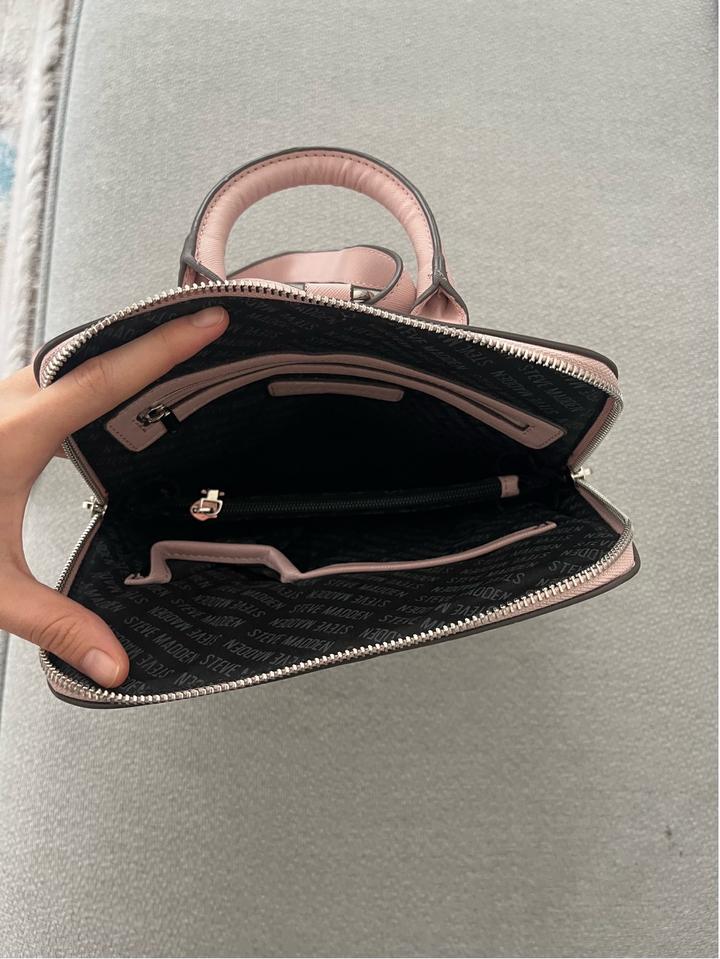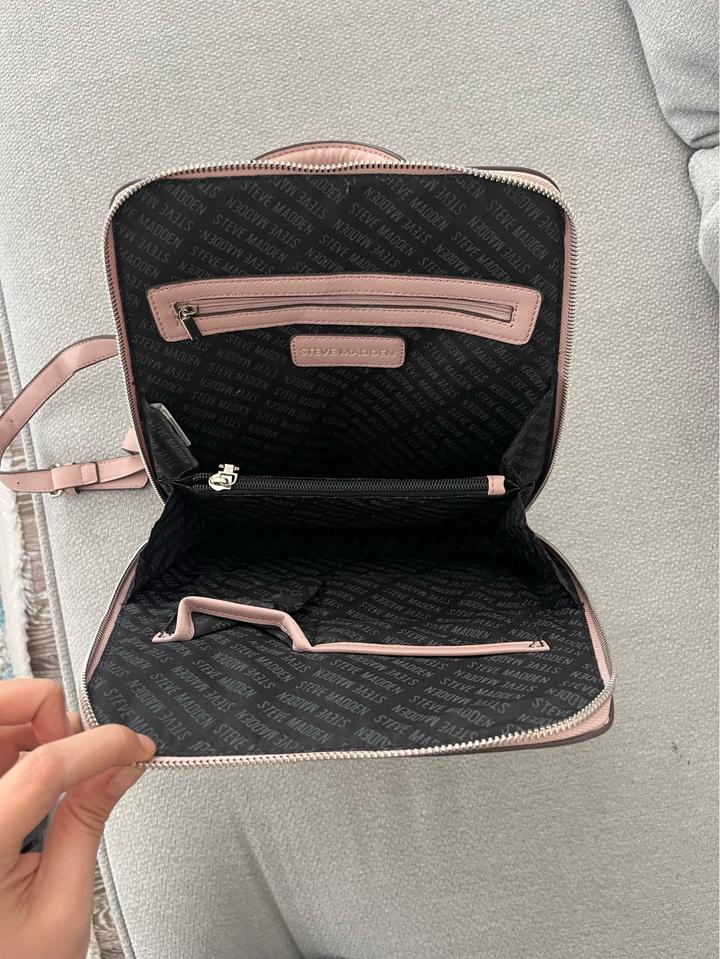 Приглушенно ррзовый рюкзак. С серебренной фарнитурой. Много отсеков для организации. Артикул: 562014