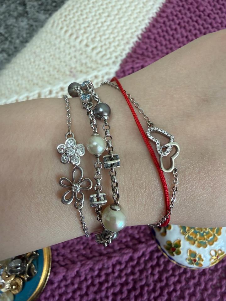 Изящный женственный браслет Cacharel в серебристом цвете с цветочными элементами и сияющими камнями. Очень нежно смотрится на руке, подходит как на каждый день, так и под более нарядный образ. Лаконичный, аккуратный и красивый аксессуар. Описание: • бренд: Cacharel • цвет: серебристый • декор: цветы, камни • стиль: нежный / романтичный • состояние: хорошее Артикул: 562029