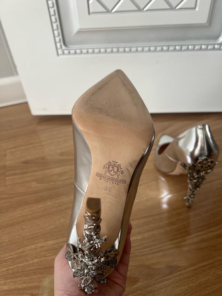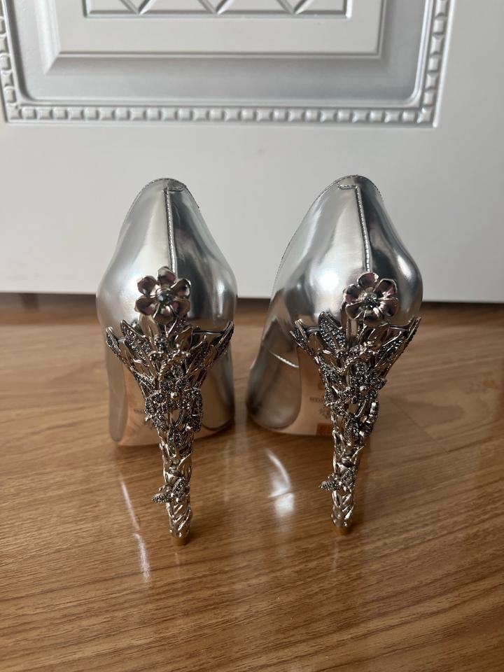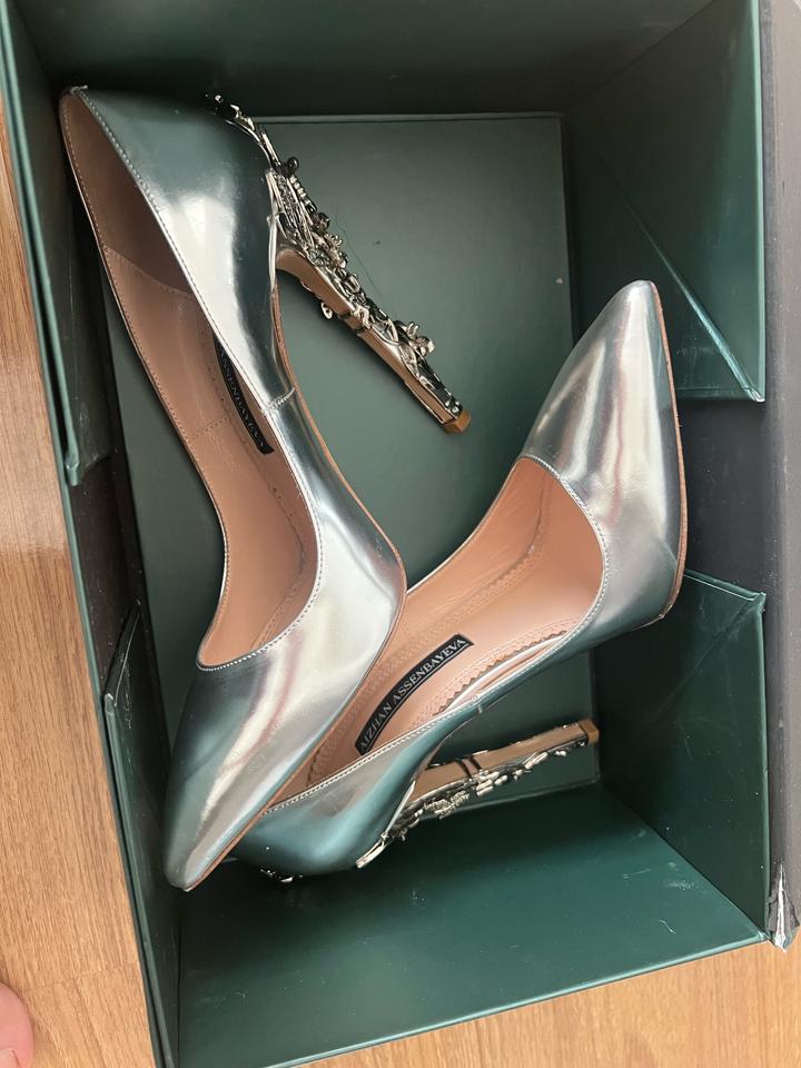 Туфли на выход из лакированной кожи. Очень красивые, размер 38, но маломерят на 37 размер, серебристый Артикул: 562075