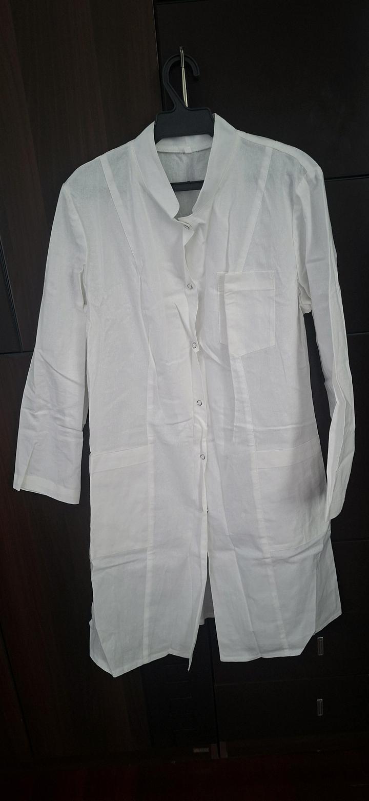 Белый хлопковый халат медицинский, не разу не ношенный, длина-102 см, рукава -57 см Артикул: 562077