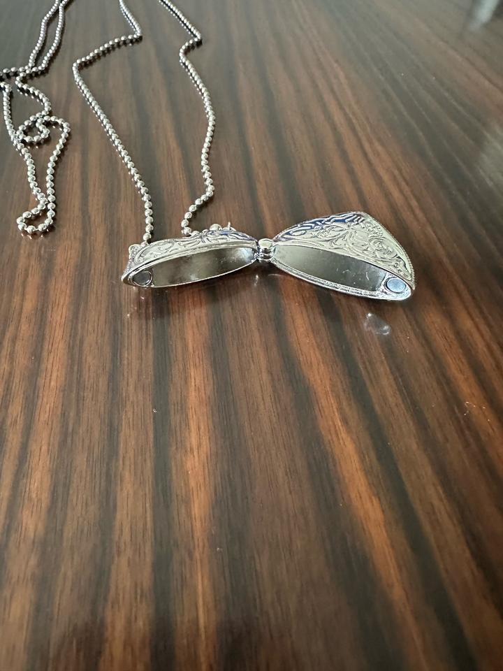 Ожерелье длинное, рекомендуется носить через плечо, длина 122 см. Крышка подвески на магните. Артикул: 562098