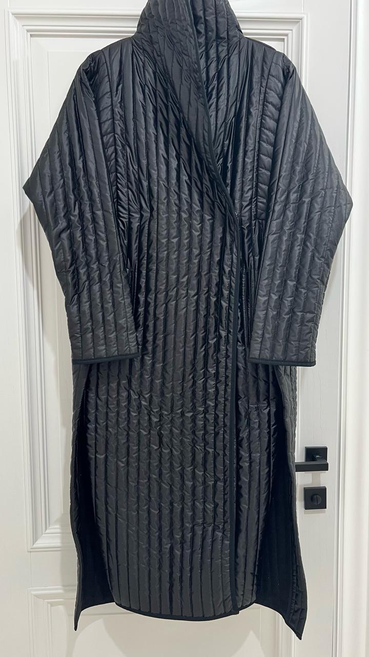 Продается стеганное пальто Бренда Marco Moretti. Пальто стеганное, черного цвета, по бокам разрезы на кнопках, спереди также закрываются на кнопки , имеются карманы, стойка воротник, сезон весна-осень. Состав: 6+7### ### ## ##000 тенге. Артикул: 562126