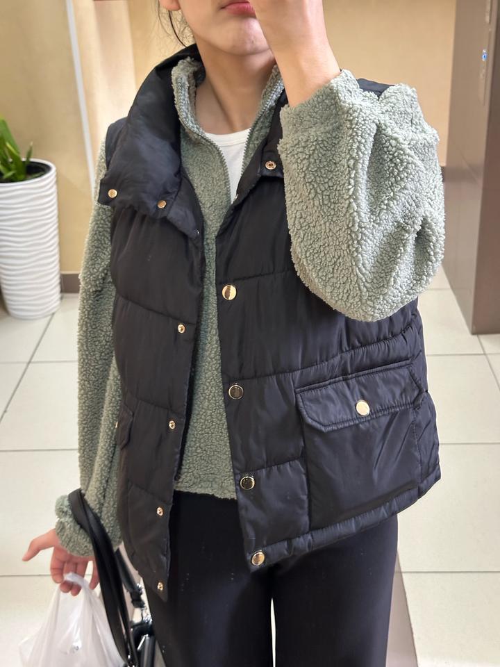Шерстяной полузамок цвета хакки. Идет как оверсайз. Есть небольшой деффект с замком, но не заметен. Покупала в H&M. Артикул: 562155