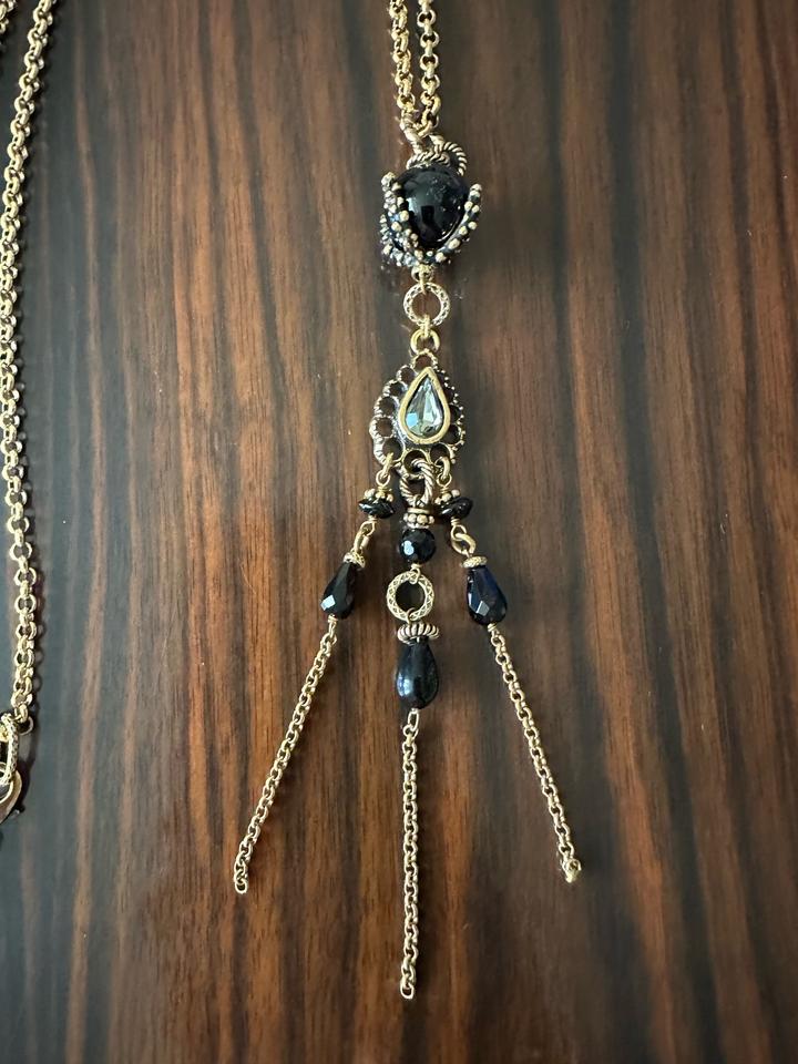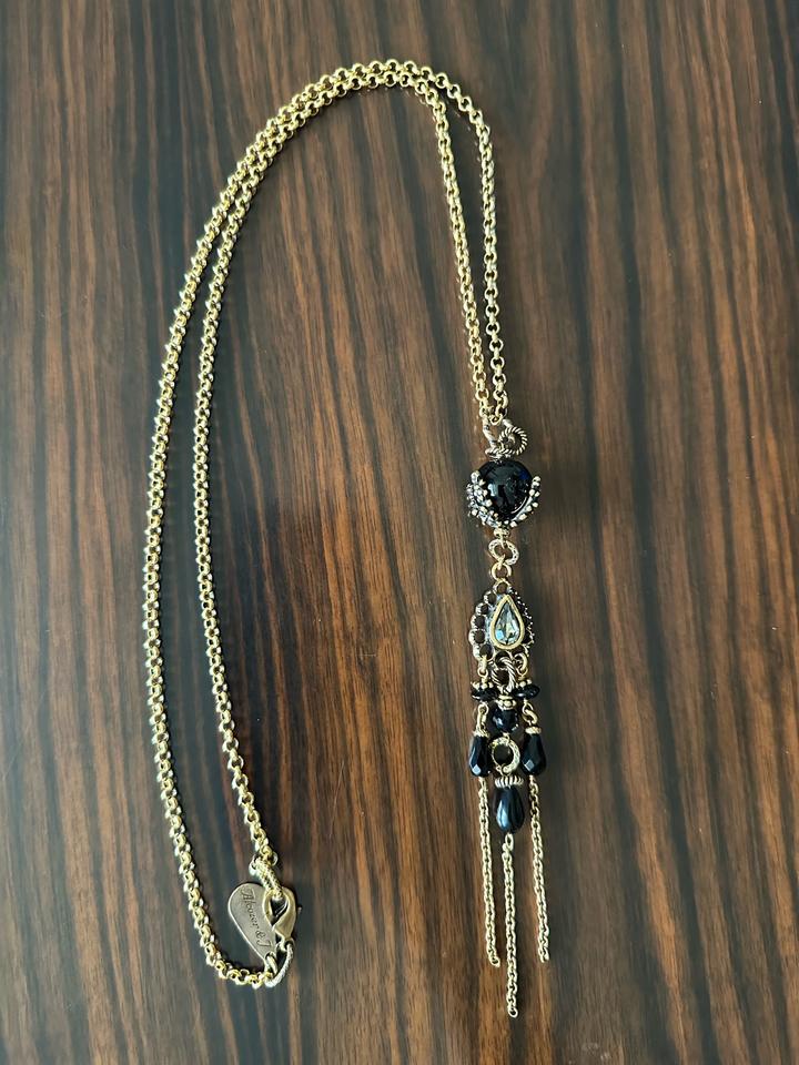Винтажная цепь с кулоном с черным камнем, возможно агат Артикул: 562163