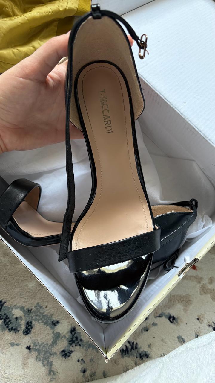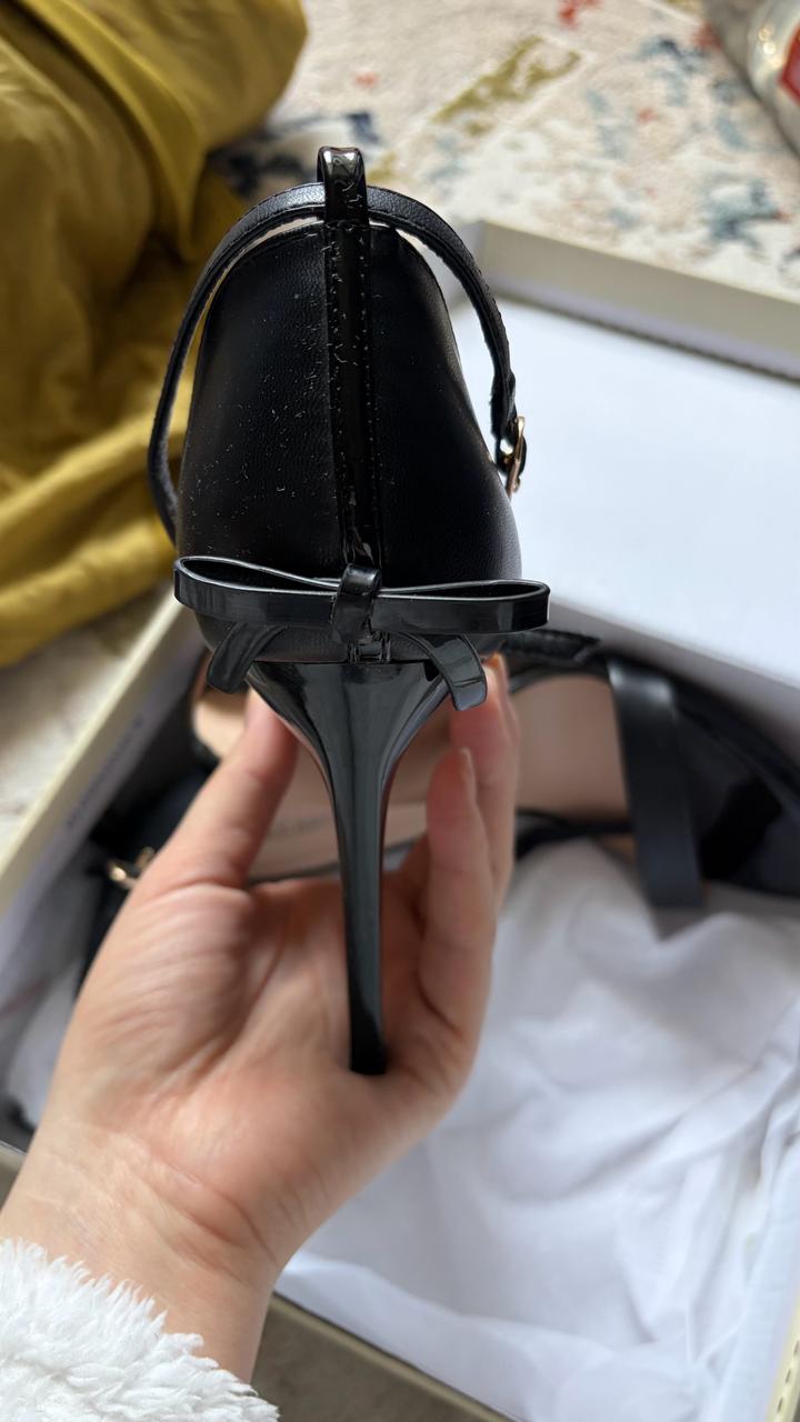 Черные босоножки, новые были в носке два раза на выход. Утонченно сидят на ножках💅, с бантом сзади смотрится нежно 🌸комбинация лакировки и кожи 👡 Артикул: 562204