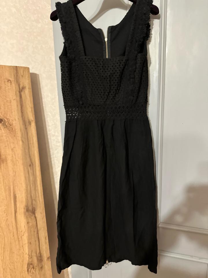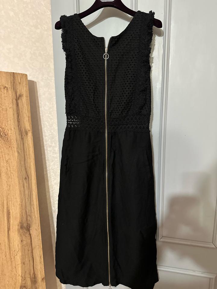Чёрное платье с акцентной молнией и фактурным верхом ✨S