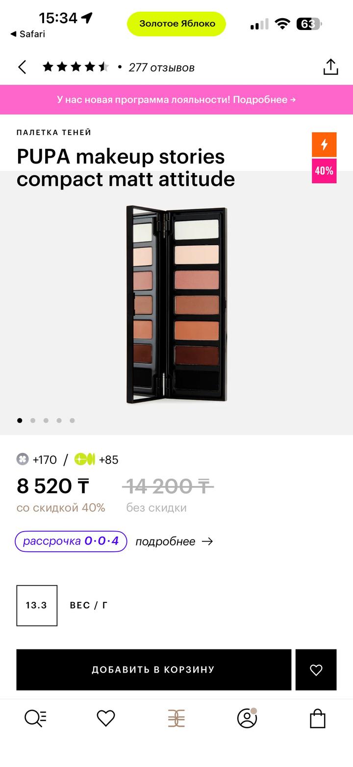 Пользовалась несколько раз. Makeup Stories Compact Matt Attitude обладает легкой шелковистой текстурой, которая равномерно ложится на кожу век, придавая взгляду особую притягательность. Эффект металлик-покрытия отлично сочетается с глубоким матовым тоном теней палетки от Pupa, их дополняет сатиновый оттенок, который добавляет легкое сияние. Артикул: 562276
