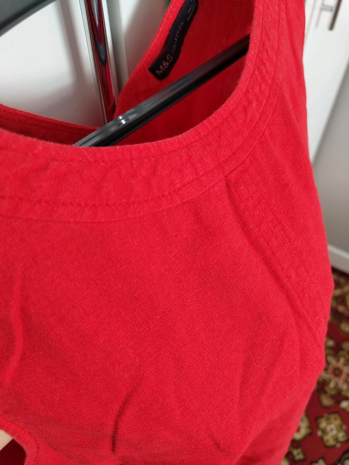 В жизни совсем чуть-чуть менее яркое, смесь льна и вискозы, продаю стало большое. Длина до колена. Пишет размер 46, но подойдёт L-XL Артикул: 562296