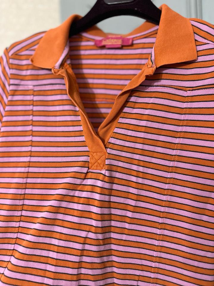 Игривое сочетание розового и апельсинового оттенков с тонкой полоской создаёт тот самый интеллектуальный preppy-настроение с ноткой дерзости. Качественный трикотаж мягко садится по фигуре, подчёркивая силуэт без лишней строгости. Контрастный воротник добавляет акцент и делает вещь визуально «собранной», будто образ уже продуман стилистом. Идеально смотрится с мини-юбками, джинсами с высокой посадкой или строгими брюками для контраста. Артикул: 562324