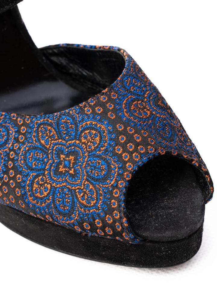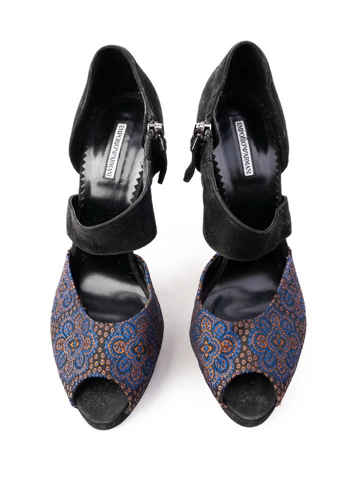 Босоножки на платформе от Emporio Armani, открытый носок Верх — кожа/текстиль, подкладка — кожа, подошва — кожаная. Артикул: 562377
