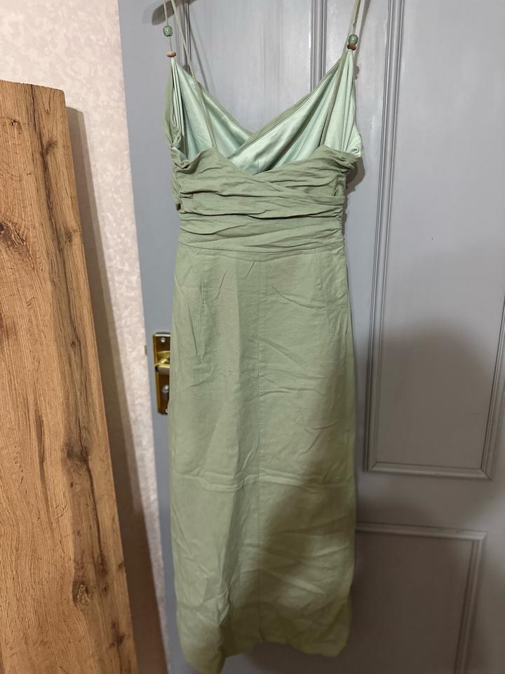 Лёгкое, струящееся и очень женственное: драпировка по фигуре, запах и тонкие бретели с декоративными бусинами. Ткань с льном — дышащая и приятная к телу. Идеально на лето, отпуск или вечерние прогулки ✨ Тот случай, когда минимализм выглядит особенно дорого 🤍 Немного маломерит. Лучше подойдет на размер S Артикул: 562408