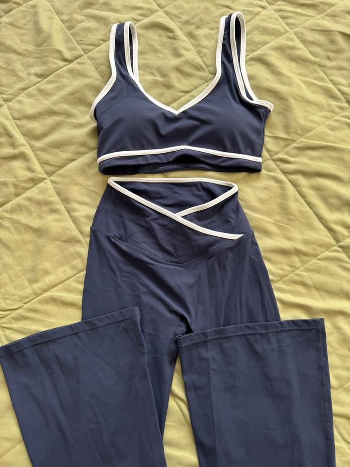 Лосины клеш и топ с белой полоской. На тренку, на пилатес классно Артикул: 562409