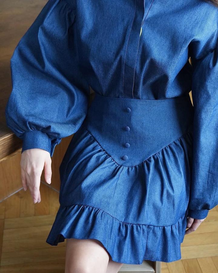 Юбка и рубашка из денима. Размер S-M Одет один раз. Артикул: 562475