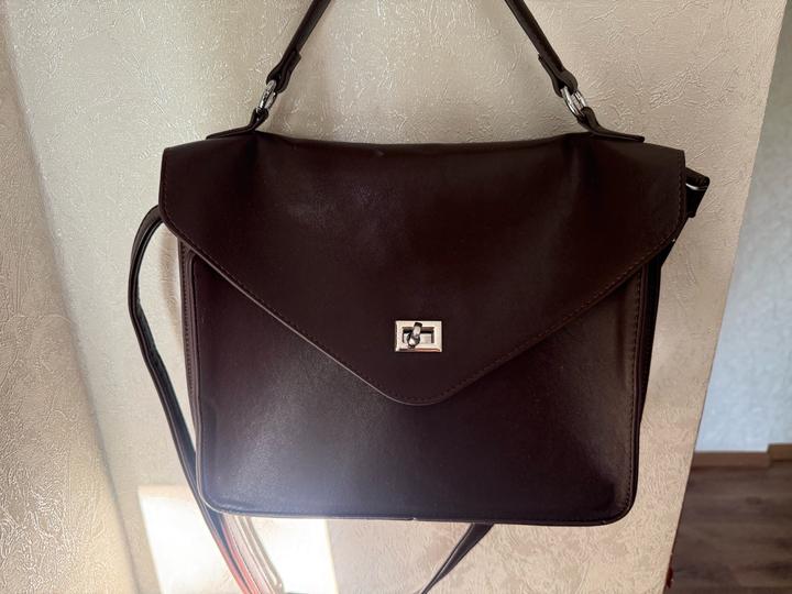 Коричнева кожаная сумка с серебряной фурнитурой. Вместительный, но не вмещает А4 без его складывания. Артикул: 562480
