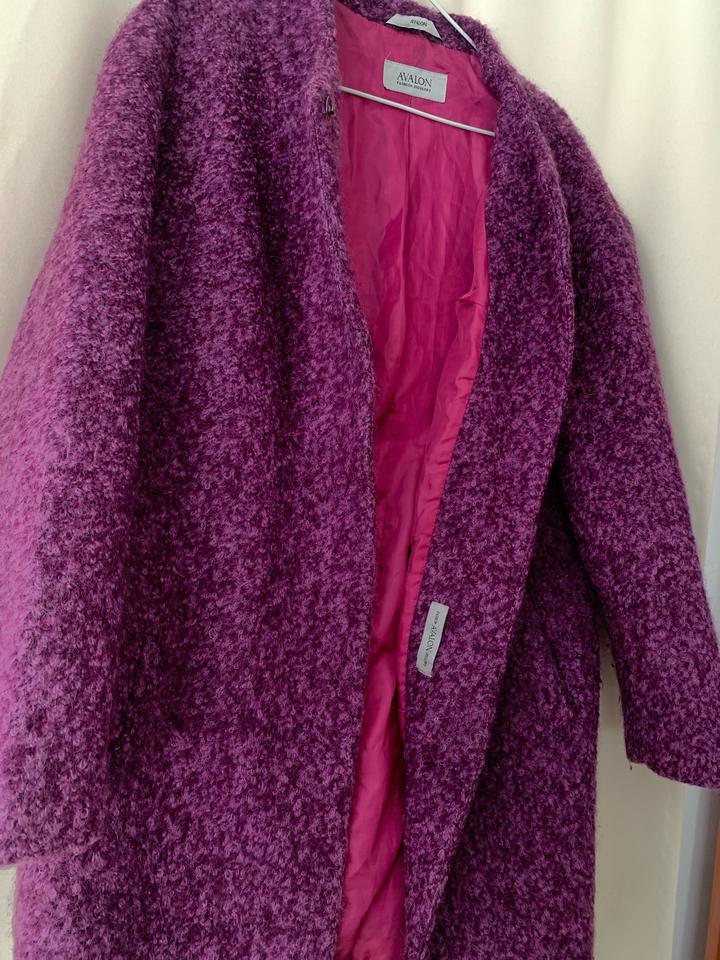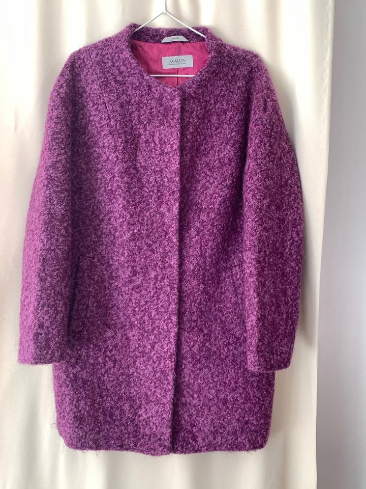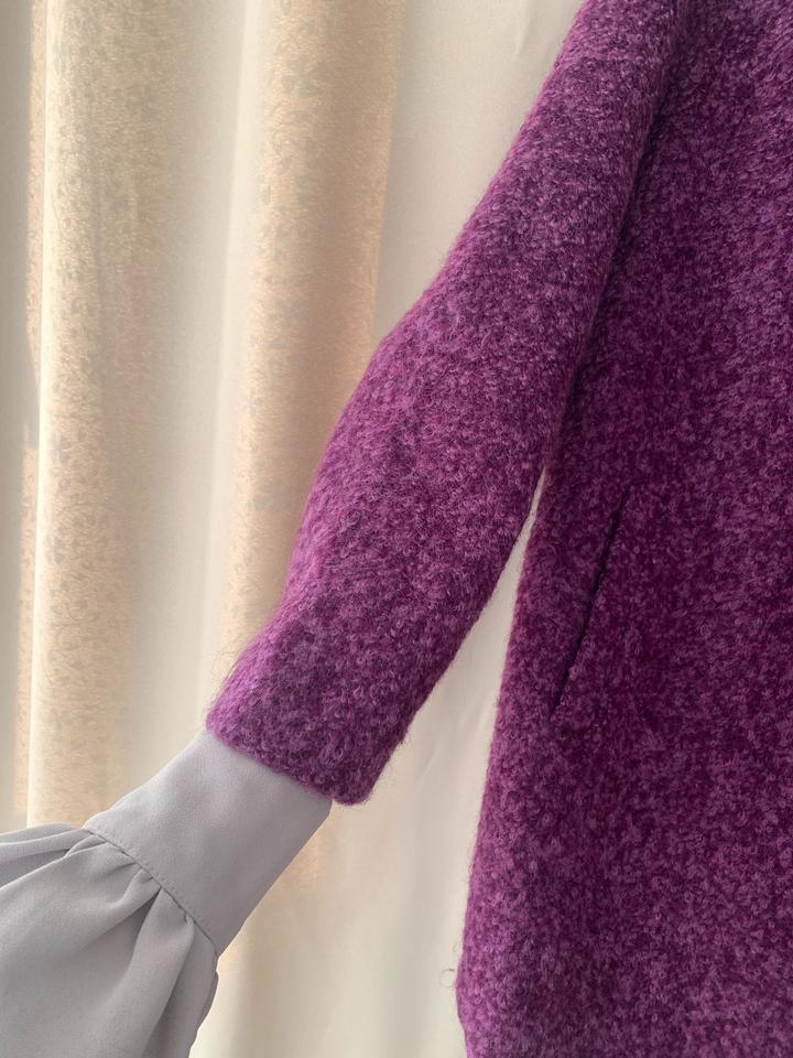 Фиолетовое пальто из шерсти — лёгкое, комфортное и не жаркое. Подойдёт для вечерних прогулок, на выход и на повседневную носку. Надевалось всего пару раз, состояние отличное. Артикул: 562554