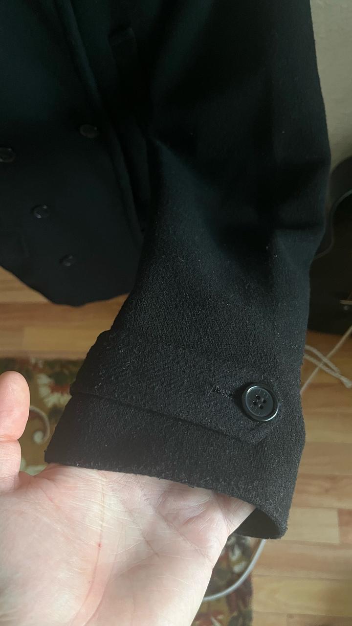 Двубортное пальто с широким отложным воротником и застежкой на пуговицы. Прямой силуэт и длина до бедер обеспечивают комфорт и универсальность в носке. Спереди предусмотрены карманы с клапанами. Материал плотный, теплый, хорошо сохраняет форму. Идеальный вариант для повседневных и деловых образов в прохладное время года. Артикул: 562578
