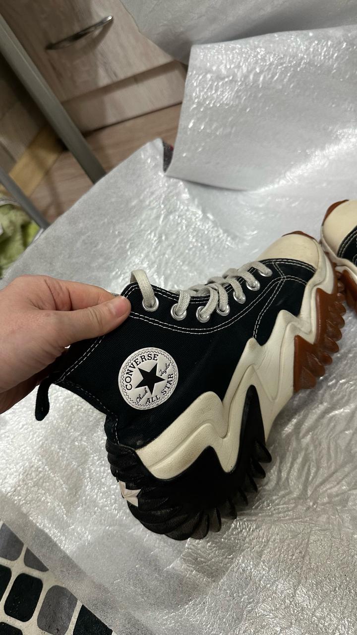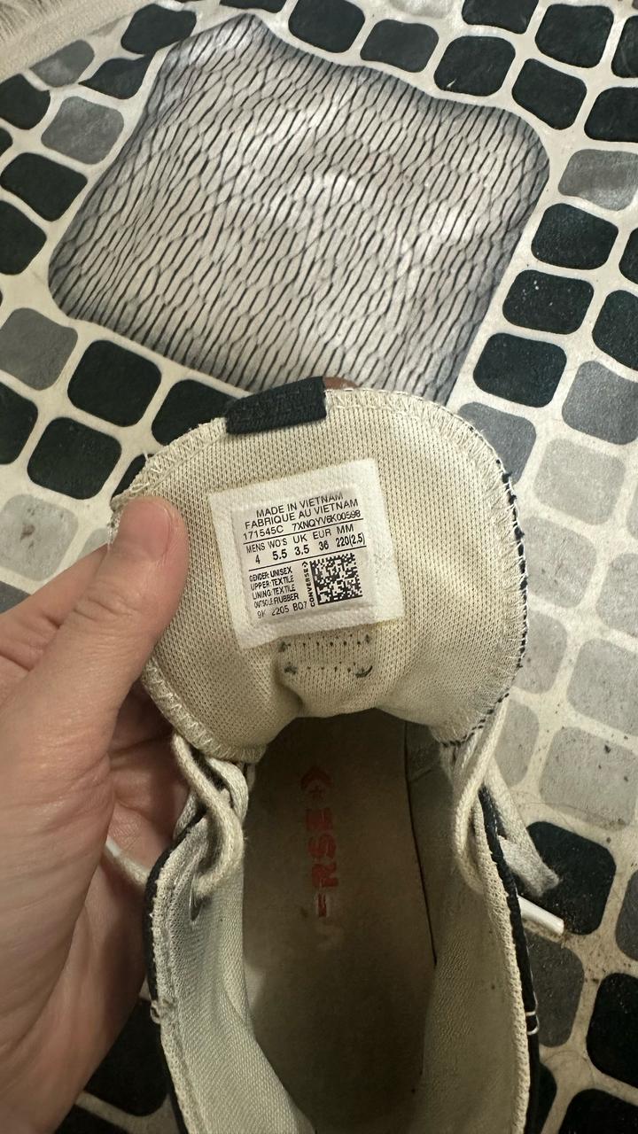 Конверсы высокие, массивные, очень стильные. Покупала в Корее в 2023 году, носила аккуратно. Состояние отличное. Раньше сидели нормально, сейчас стали тесноваты, поэтому продаю. Подойдет на 35-36 размер. Требует чистки. Артикул: 562607