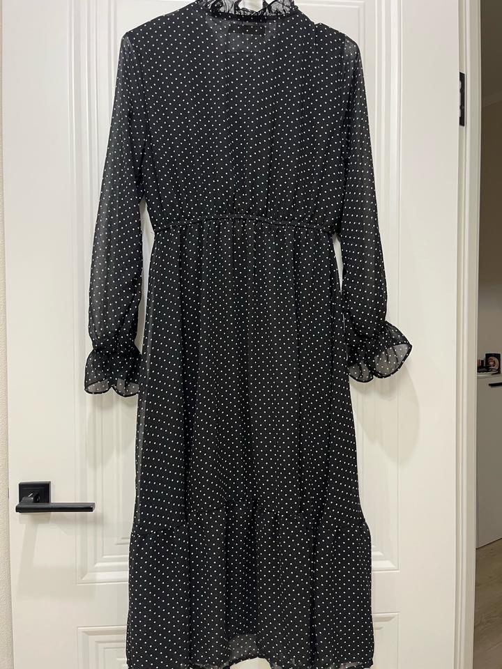 Черное платье шифон, в идеал ном состяние, надевали пару раз. Легкое идельно как летом так и зимой, длина платья 120 см, длина рукава 60 см. Артикул: 562749