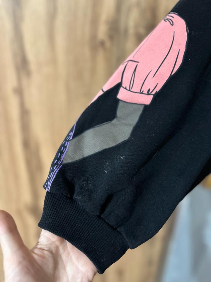 Свитшот Zara с ярким арт-принтом 🎨 Чёрная база и выразительный рисунок с персонажами — вещь, которая точно притягивает взгляды. Укороченный крой и объёмные рукава создают стильный силуэт, легко вписывается в повседневные и трендовые образы. Носится с джинсами, брюками или юбками с высокой посадкой 🖤 Акцентная вещь для смелых образов ✨ ❗️Есть небольшой нюанс (на последних фото). Попала коричневая краска. В целом на внешний вид не влияет Артикул: 562855
