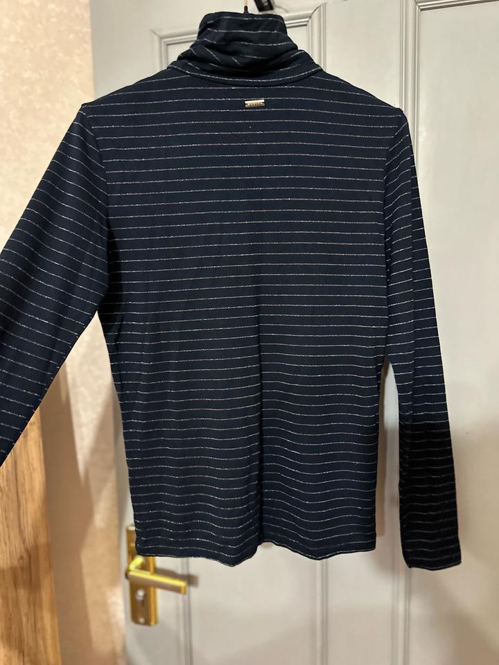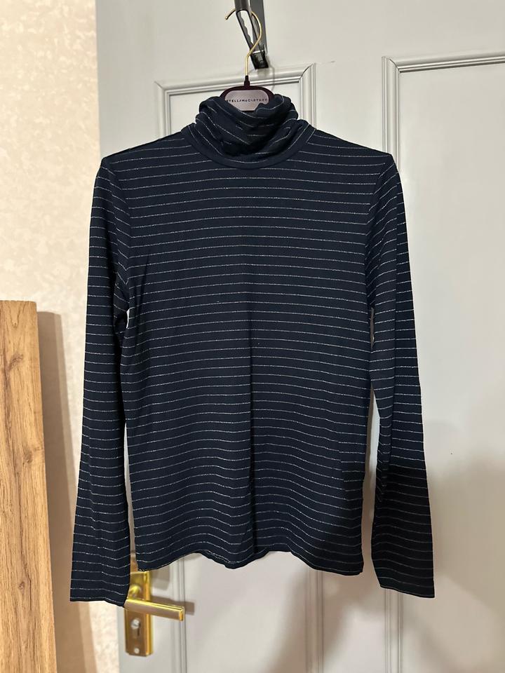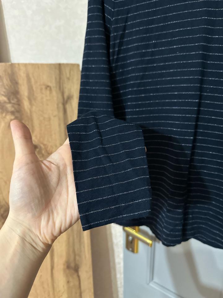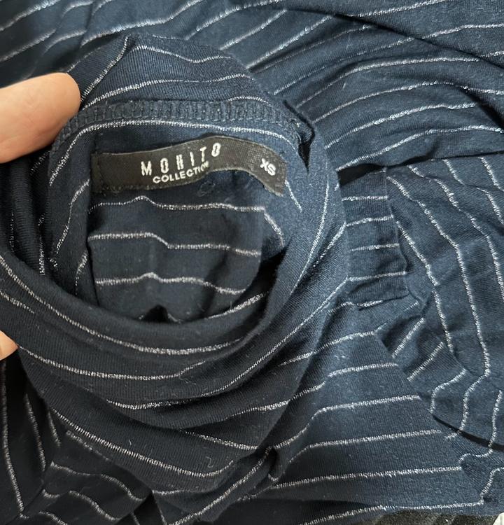 Лонгслив Mohito с деликатным блеском ✨ Тёмно-синий оттенок в сочетании с тонкой серебристой полоской — база, которая выглядит интересно. Мягкая, приятная к телу ткань и аккуратный гольф делают её идеальной для повседневных и более собранных образов. Отлично смотрится с джинсами, брюками и под жакет 💙 Размер: XS (сядет и на S за счёт эластичности) Стильная база с изюминкой ✨ Артикул: 562880