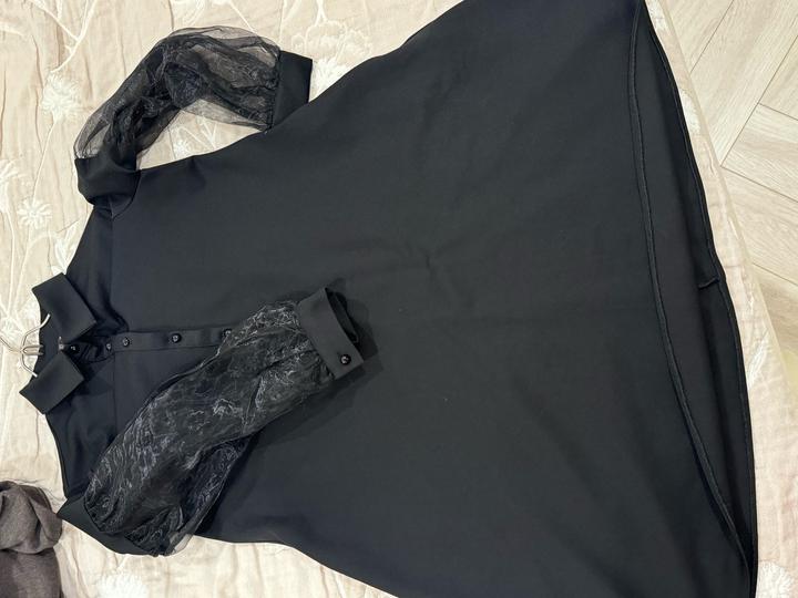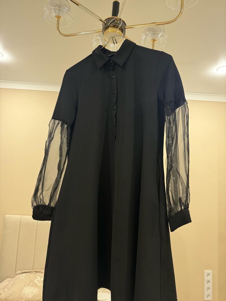 Надевала один раз, состояние отличное. Длина до колен, спереди пуговицы (расстёгиваются). Рукава с шифоновыми вставками Артикул: 562977