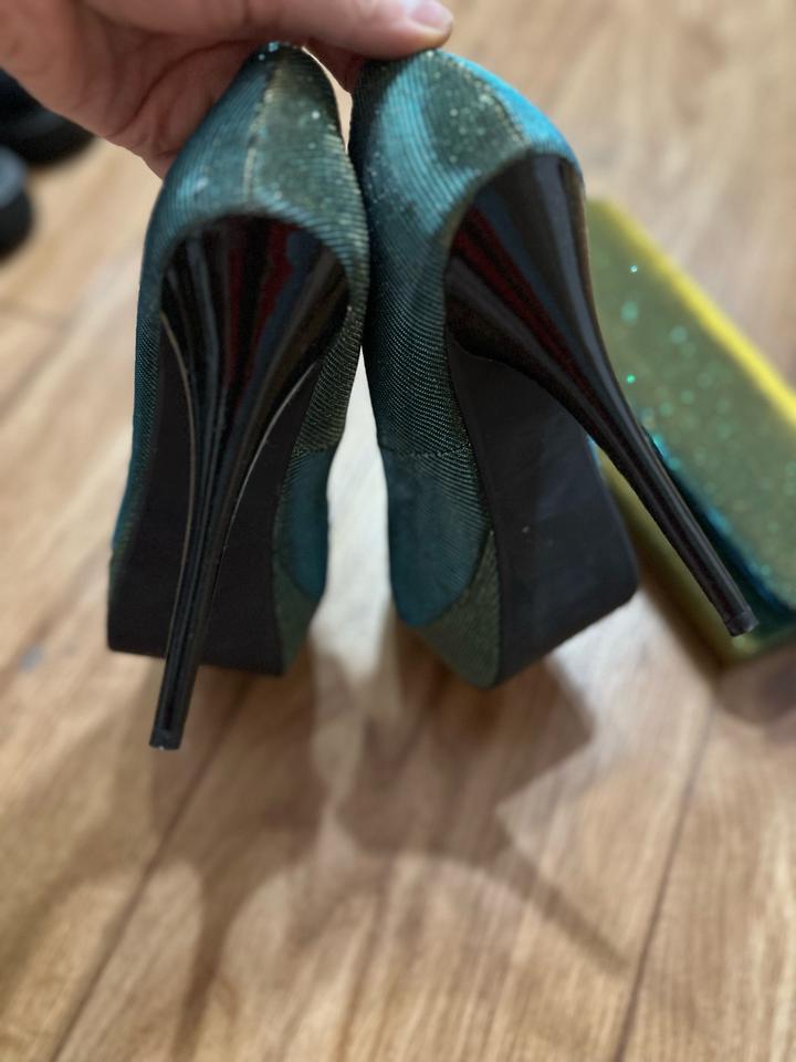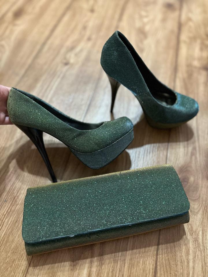 Y2K set: туфли + клатч Centro 💚 Настоящий дух нулевых — глянцевый текстиль с деликатным блеском, высокий каблук и платформа. Оттенок насыщенного зелёного с шиммером добавляет эффект «вечеринки 2000-х». Идеальный сет под образы в стиле Y2K, glam и party aesthetic. Состояние: идеальное. Для тех, кто любит эстетику нулевых и эффектные выходы ✨ Артикул: 562983