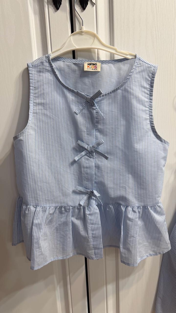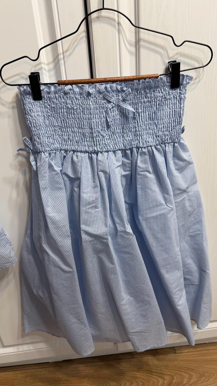 Комплект топ и юбка (ниже колена), цвет голубой, размер 13-14 лет, 154-158 см, очень мило смотрится. 1 раз одевалось на мероприятие, комплект покупали за 24 тыс Артикул: 563023