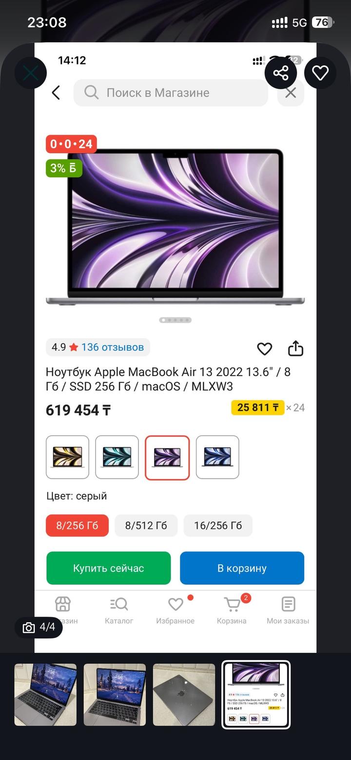 родаю MacBook Air 13" (2022) с чипом M2 - Состояние отличное, почти не пользовалась - Память: 8GB RAM / 256GB SSD - Цвет: серый - Экран: 13.6 дюйма - Полный комплект, коробка в наличии - В подарок отдам чехол и мышку (тоже почти новые) - Куплен в июле, использовался очень даже мало Рассрочка есть народ или через каспи Артикул: 563205