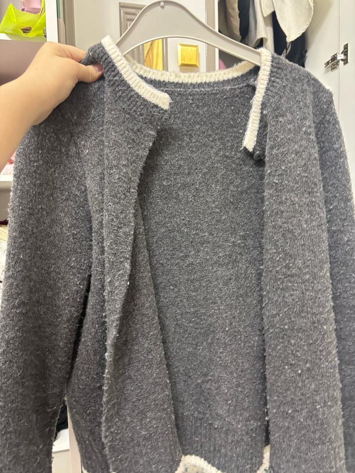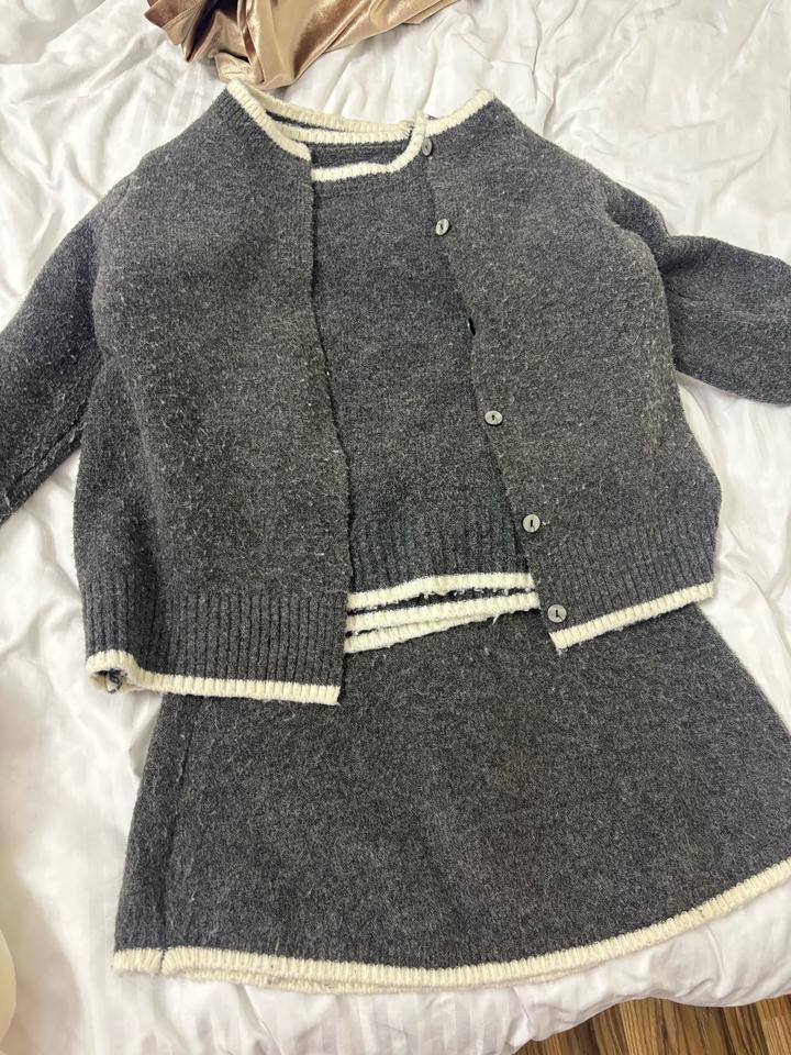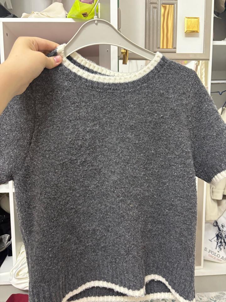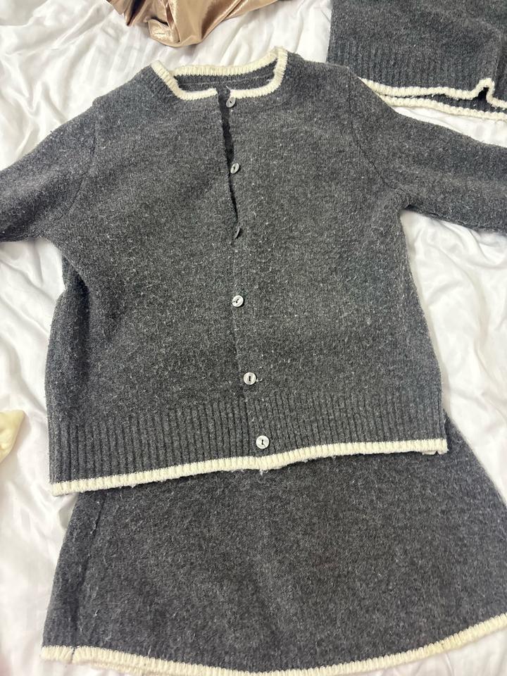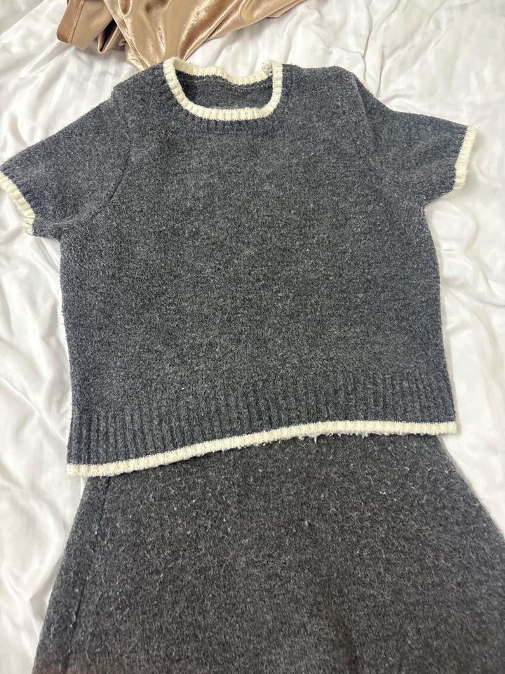 Серый костюм из футболки ,юбки и кардиганаS/M