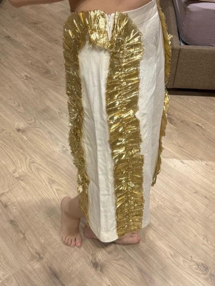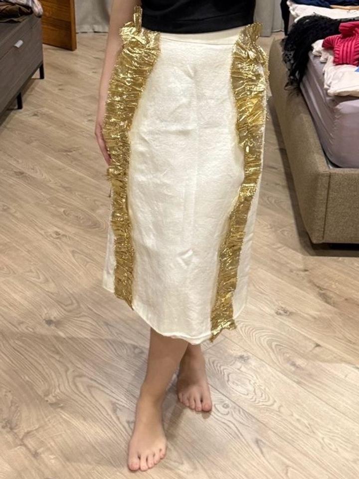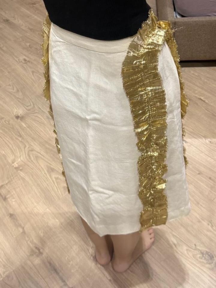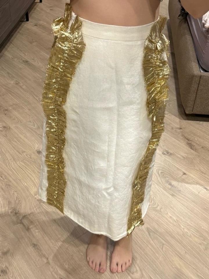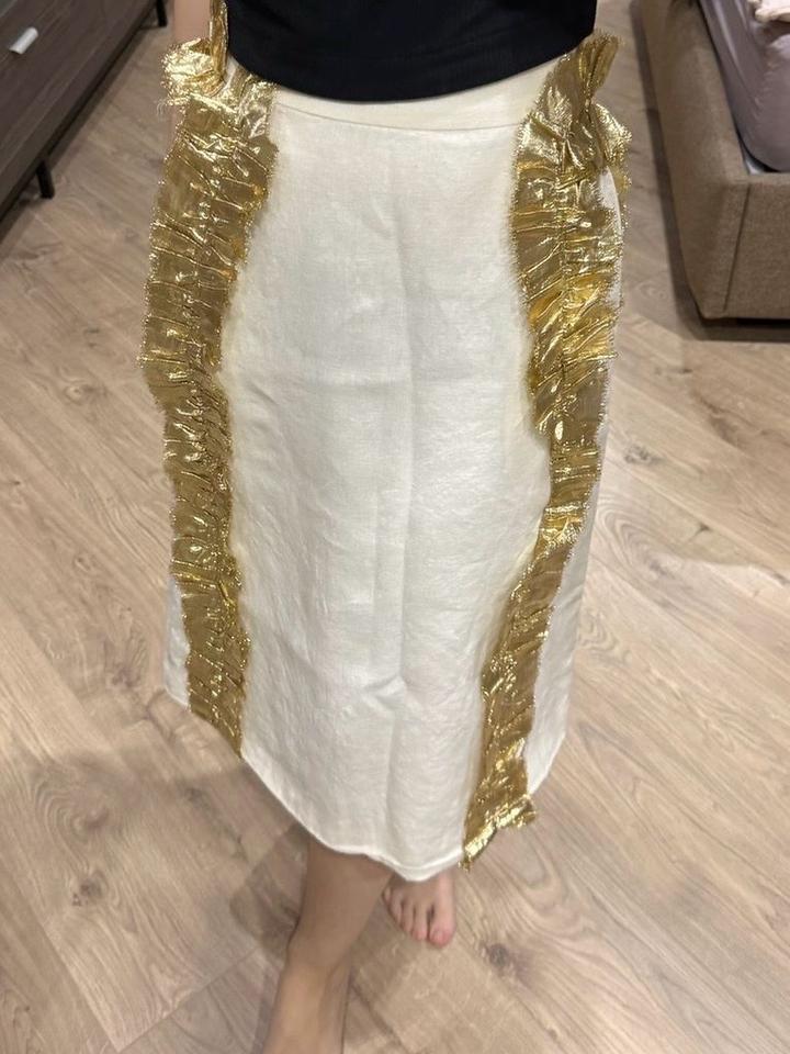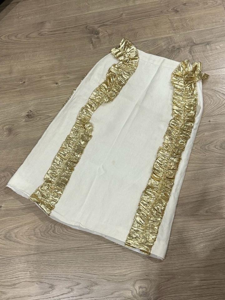 Белая юбка из льна с золотистыми элементами по бокам, бренд Malli оригинал, в новейшем состояний Артикул: 563263