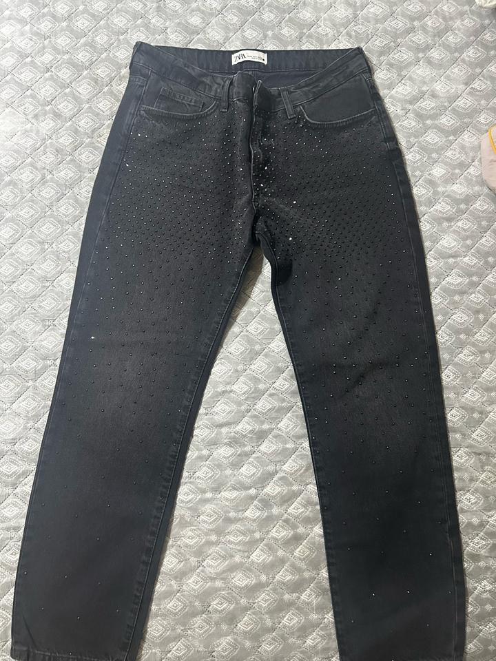 Черные джинсы со стразами, размер 38 Артикул: 563275