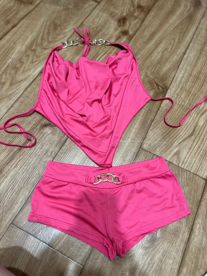Яркий комплект для танцев в сочном розовом оттенке 💕 Топ с эффектной драпировкой и открытой спиной подчёркивает силуэт, шорты с декоративным элементом на талии добавляют акцент. Эластичная ткань комфортно садится по фигуре и не сковывает движения. Идеально для танцев и выступлений. На размер XS-S Артикул: 563359