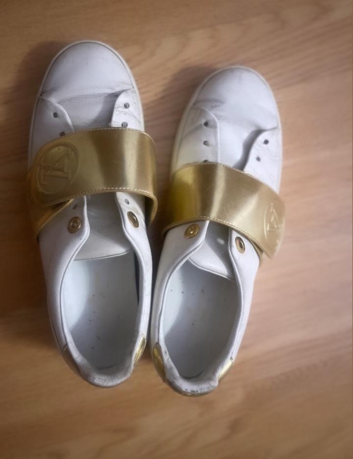 Кроссовки имеют лаконичный и вневременной дизайн Золотистый ремешок с логотипом LV Circle — это главный «вау-эффект». Они не выглядят как обычные белые кроссовки; это полноценный аксессуар, который притягивает взгляды. 💯 original Липучка поверх шнурков — безумно практично.Кожа очень плотная и качественная. Она отлично держит форму Очень удобные и комфортные для повседневной жизни Размер 38 -38,5 Эта модель по своему дизайну и комфорту никогда не выйдет из моды Артикул: 563414
