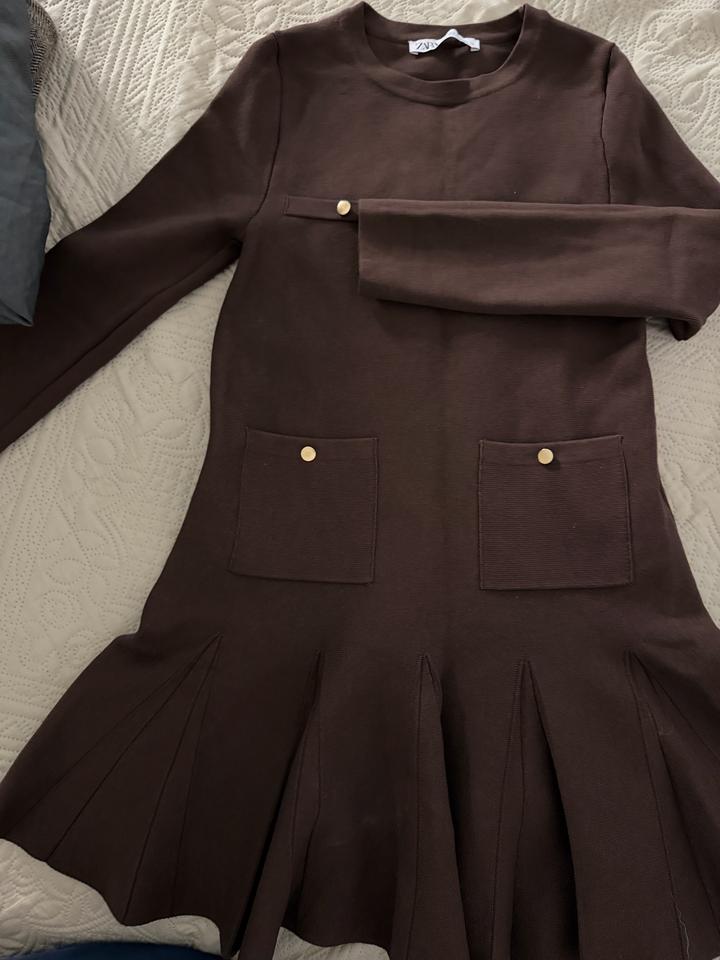 Новое платье от Zara, 40-42 xs-s, шоколадного цвета . Плотная ткань , не успели поносить , Зимой с сапогами длинными будет супер 👍 Артикул: 563415