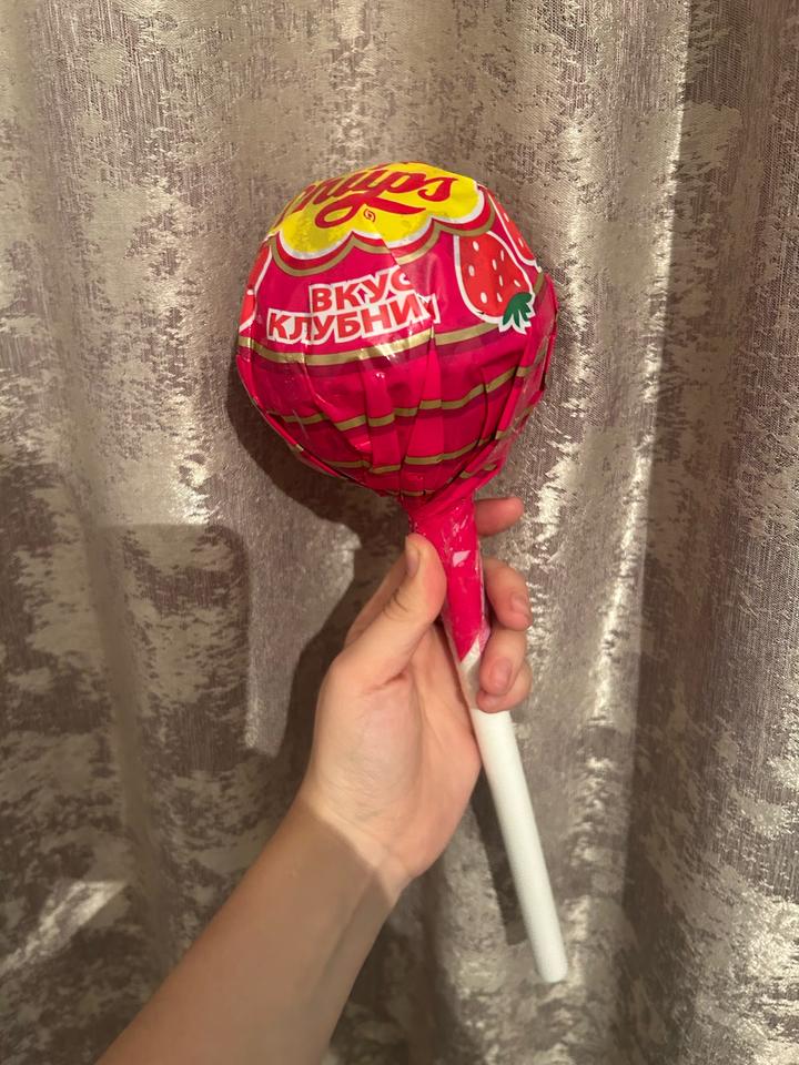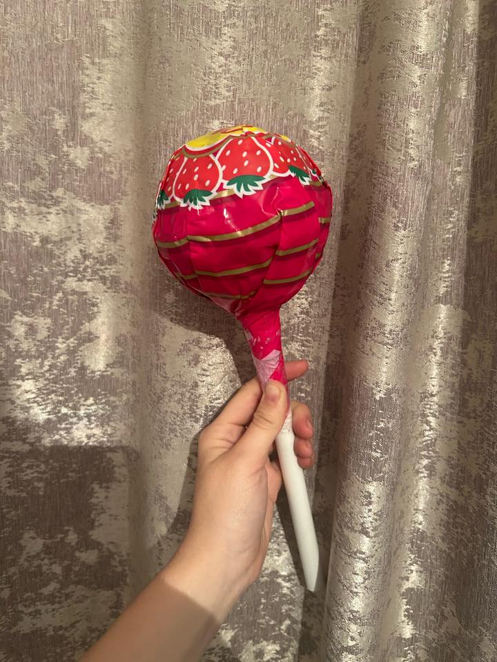 • 🍓 клубничный вкус/дизайн • яркая розовая обертка • белая «палочка» • круглая форма чупа-чупса XXL Настоящий леденец в палочке был куплен в меломане новая! Артикул: 563505