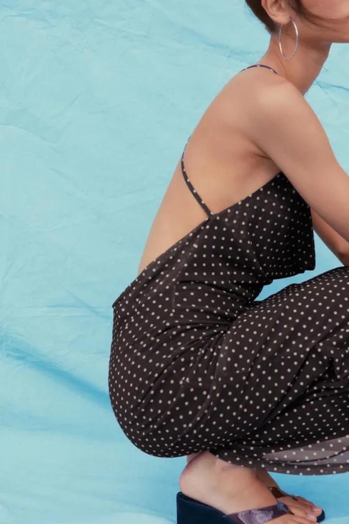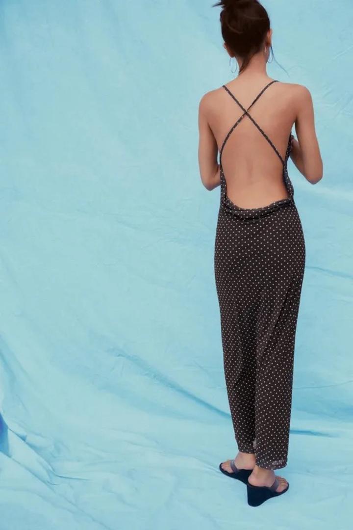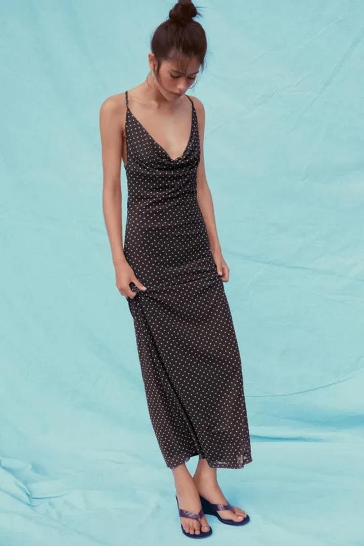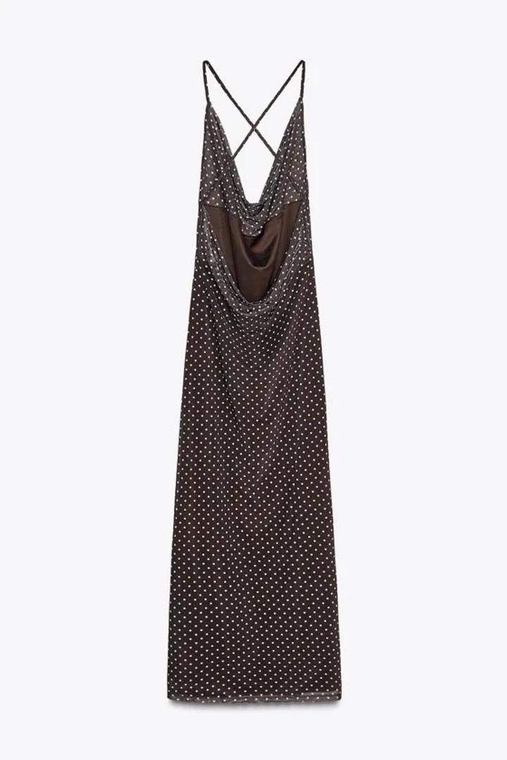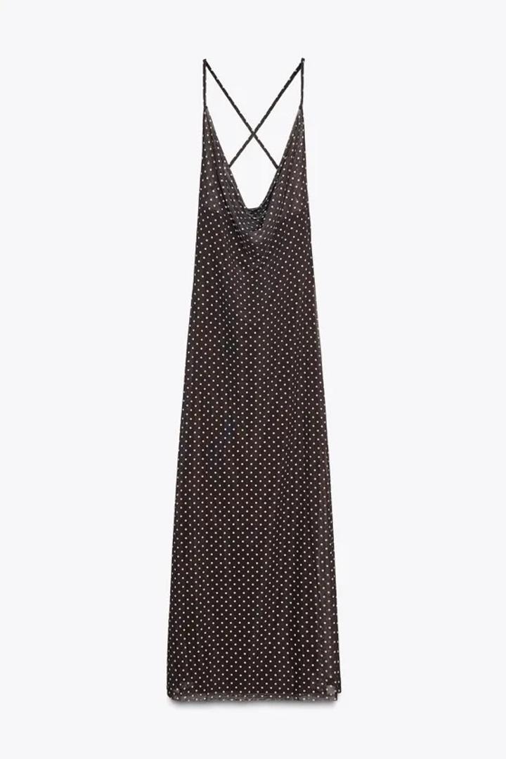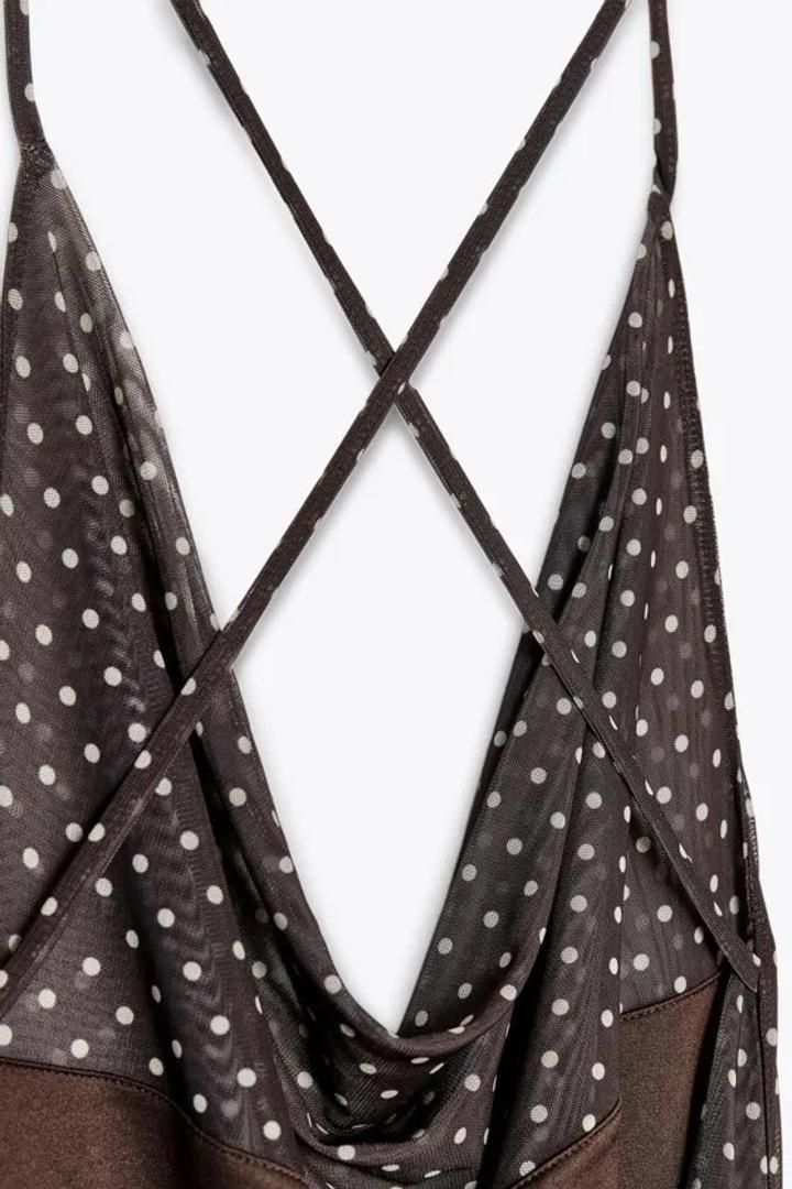 Длинное платье из сетчатой ткани с драпированным вырезом и тонкими скрещенными сзади бретелями Артикул: 563529
