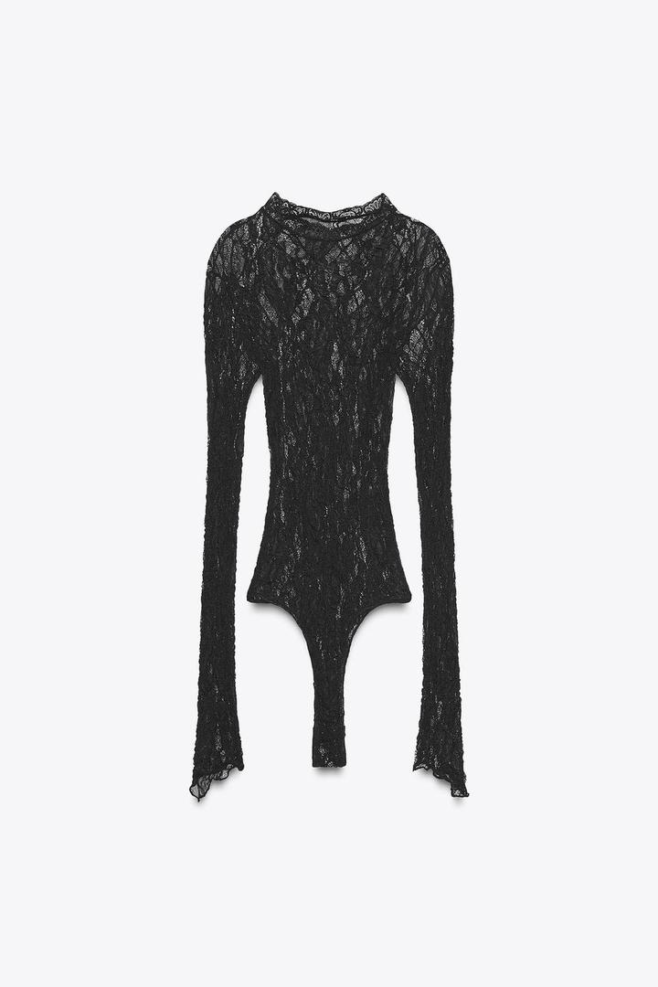 Полупрозрачное боди из красивого кружева. Круглый вырез и длинные рукава. Застежка на кнопки снизу Артикул: 563550