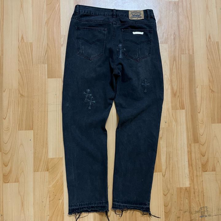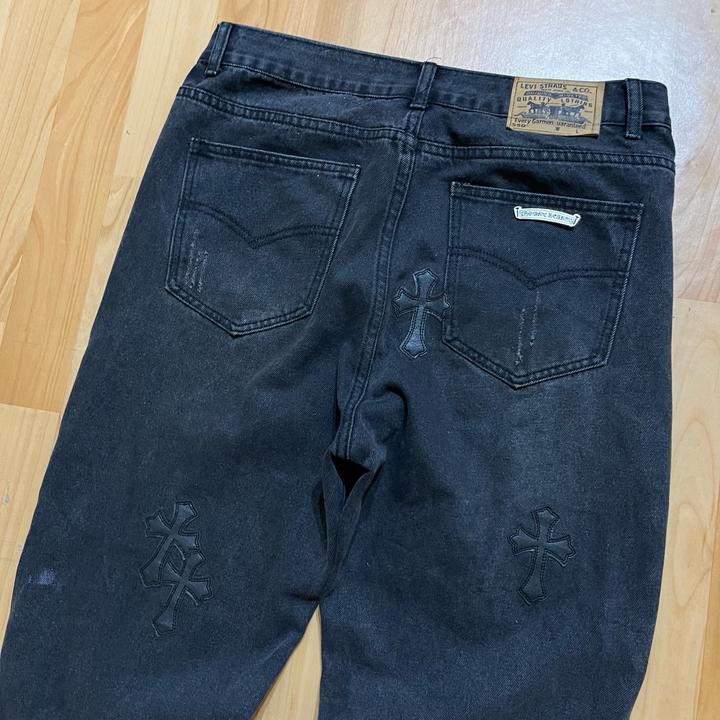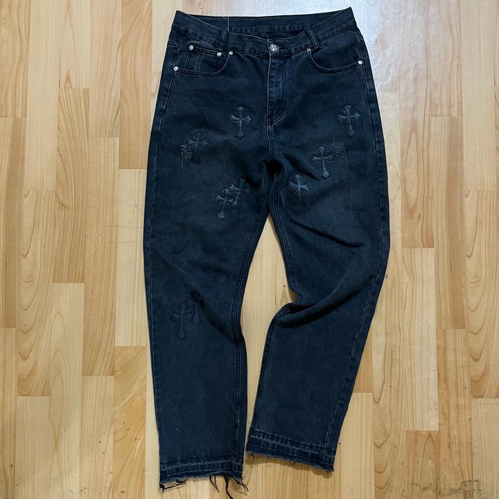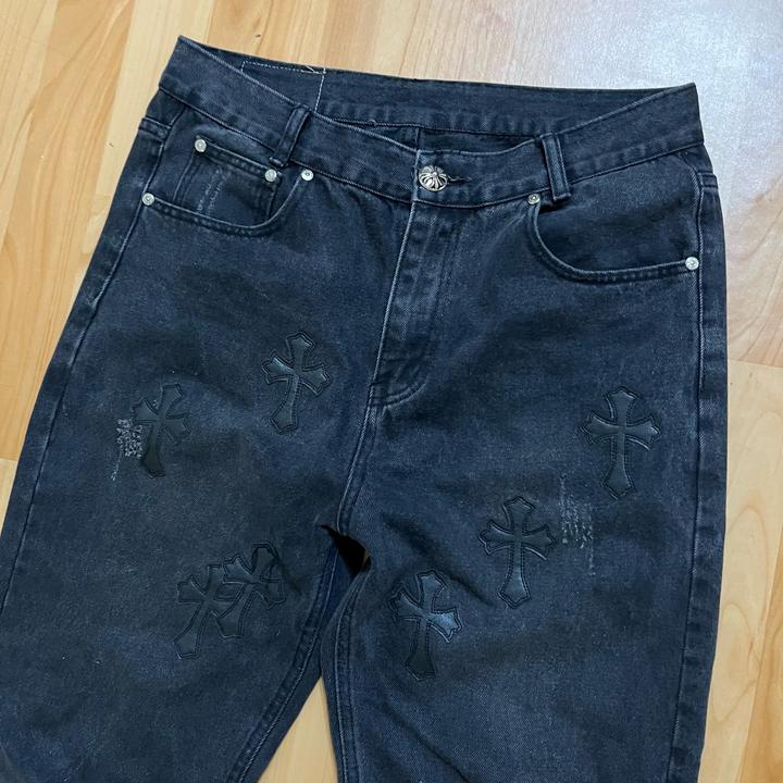 Премиальные джинсы из плотного денима с фирменным дерзким стилем: кресты, кожаные вставки, металлические детали Размер 34 Артикул: 563560