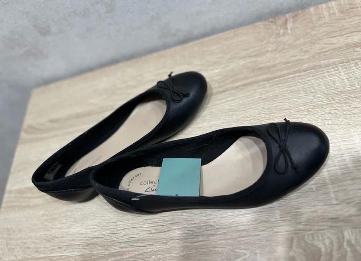 Новые балетки Clarks (с этикеткой и коробкой), покупали в Интертопе, на узкую ногу 35,5-36 р-ра. Цвет черный. Артикул: 563580