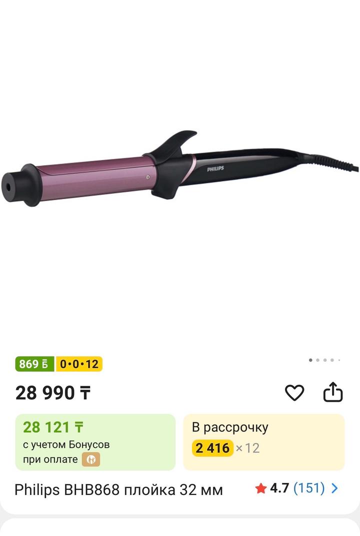 Плойка Philips (крупные локоны) Продам плойку Philips в отличном состоянии. Диаметр — идеальный для создания красивых крупных локонов и объёма Быстро нагревается Бережно укладывает волосы Удобная ручка и зажим Подходит для ежедневной укладки Использовалась аккуратно, всё работает идеально Артикул: 563660
