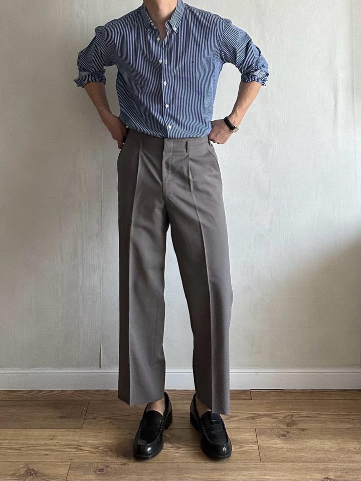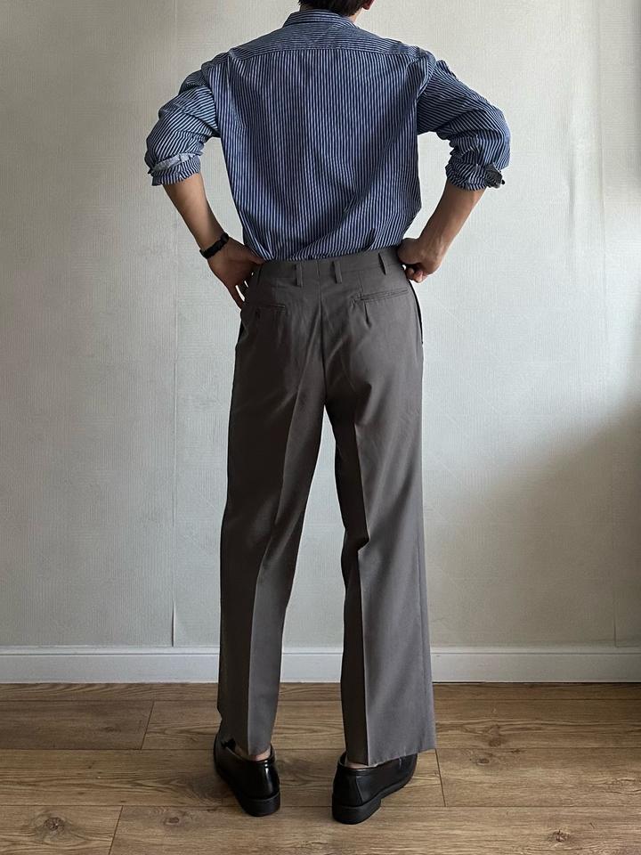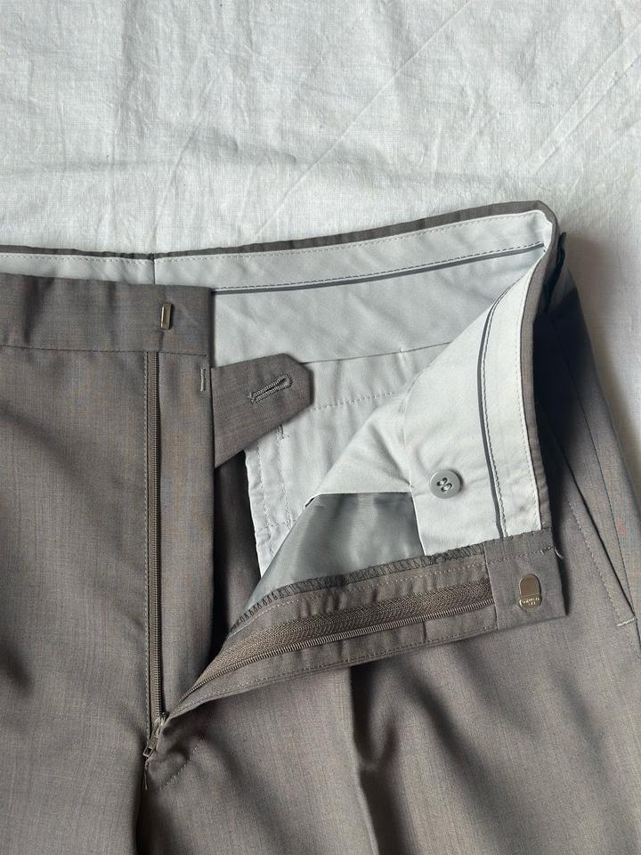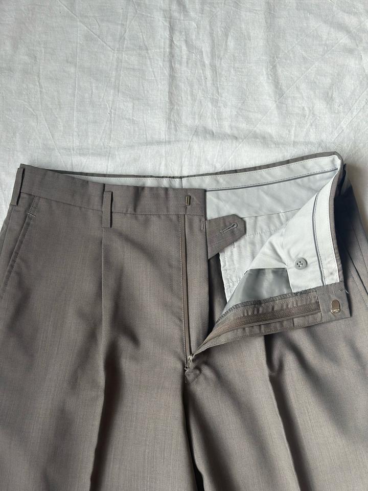 Серые прямые брюки с защипами и высокой посадкой. Очень легкий летний материал из 65% шерсти и 35% пэ Размер М (W32 L30) Талия 82 Бедра 114 Посадка 29 Выход 24 Длина 99 (запас +10см) Made in Japan 🇯🇵 Состояние хорошее, 10/10 Параметры модели: рост 183, размер М-Л Артикул: 563737