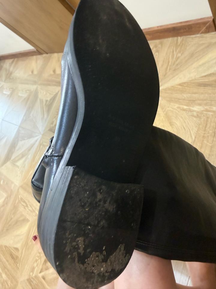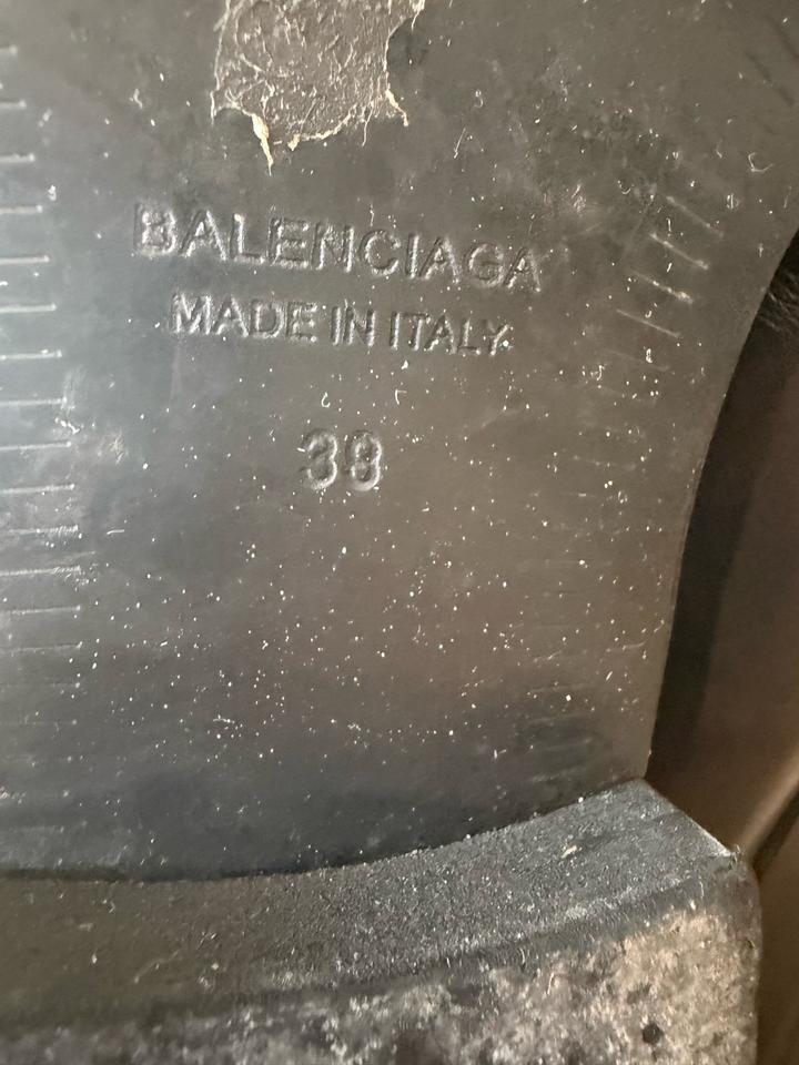 Сапоги Balenciaga Размер: 38 Натуральная мягкая кожа, мягкие и комфортные в носке Высокие, смотрятся очень эффектно на ноге Покупались в Англии, муж подарил несколько лет назад, не мой стиль, носила раза 3 в Астане, точно не знаю оригинал или нет. Состояние: есть следы носки на подошве (видно на фото), верх в хорошем состоянии Стильные, базовые — подойдут как под casual, так и под более собранные образы Артикул: 563885
