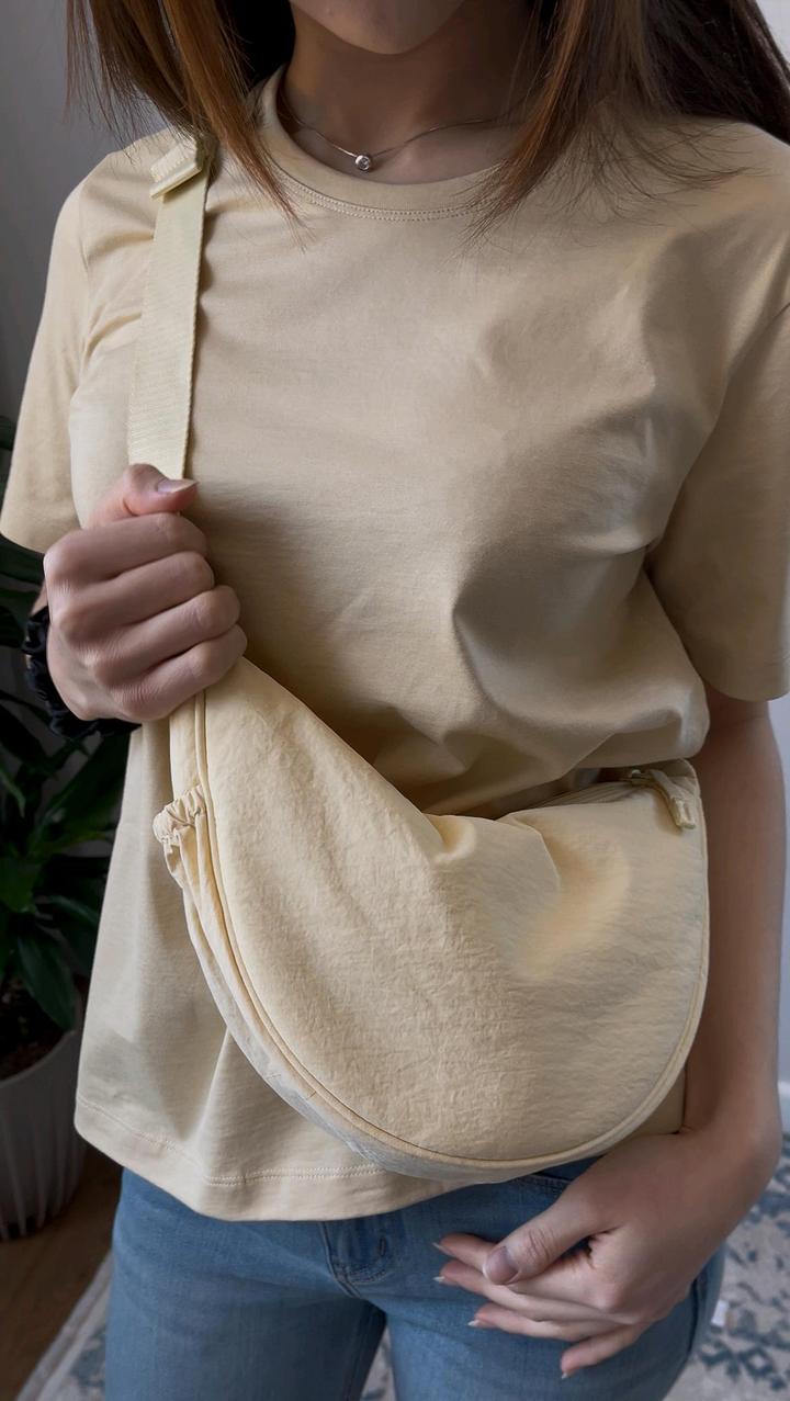 Трендовая сумка Uniqlo Регулируемый ремень, карманы, удобная и компактная форма. Объём около 4 л. Ткань водоотталкивающая. Цвет: сливочное масло. Куплен на сайте Uniqlo в Китае. Артикул: 564002
