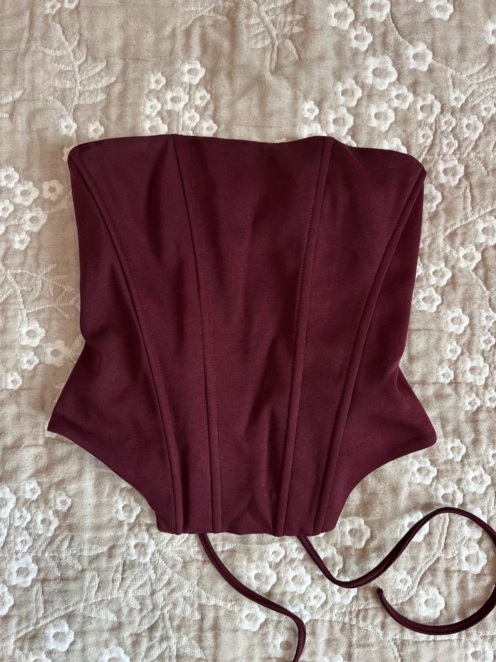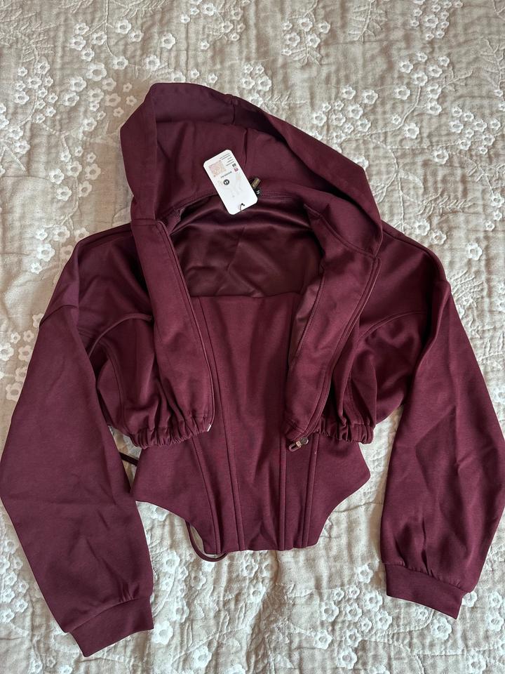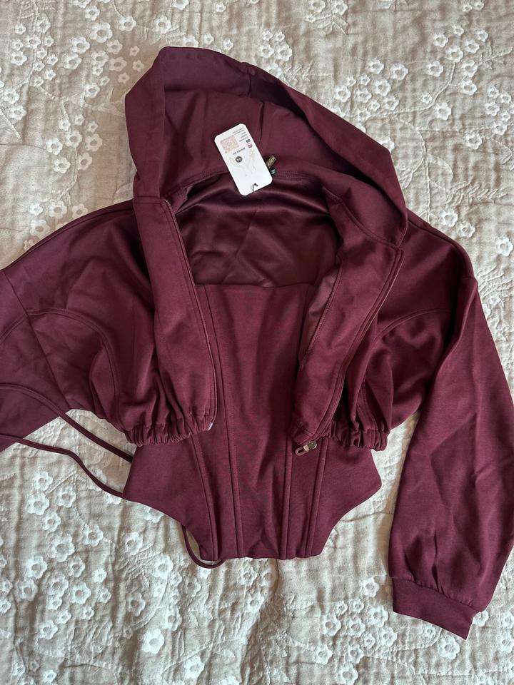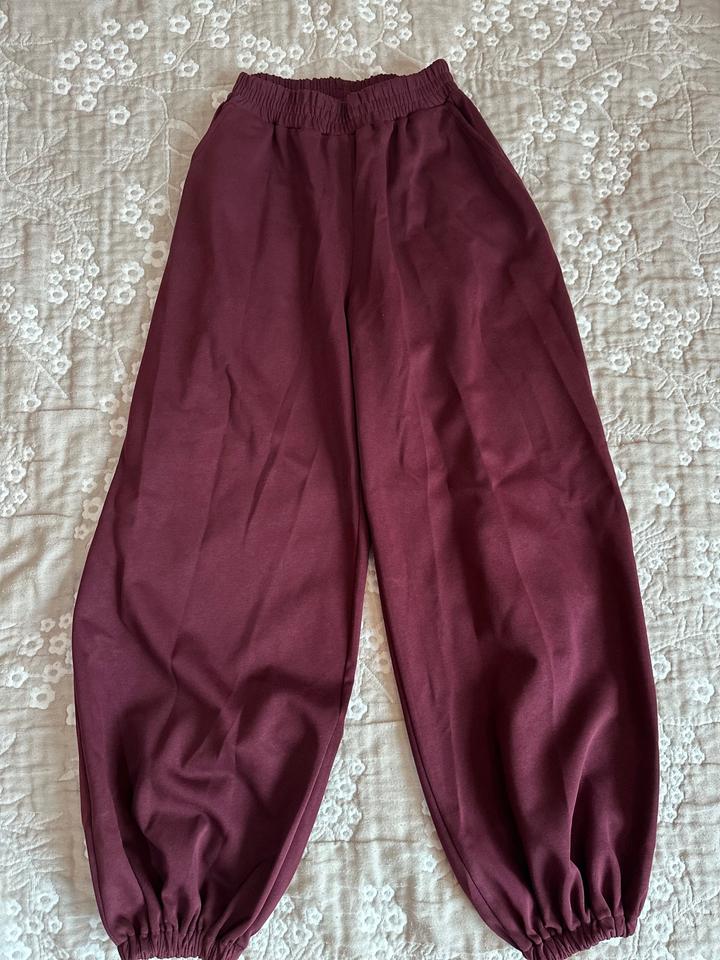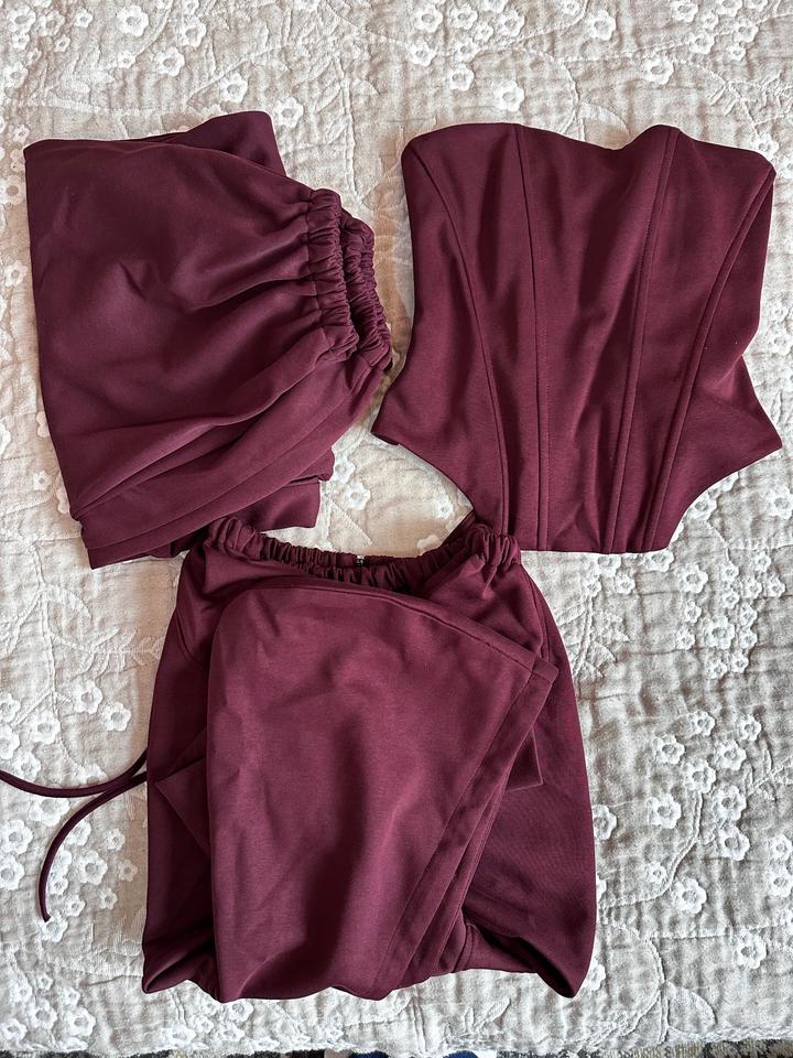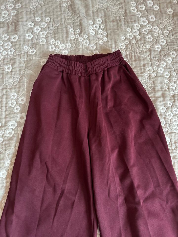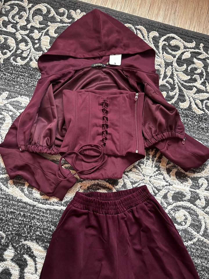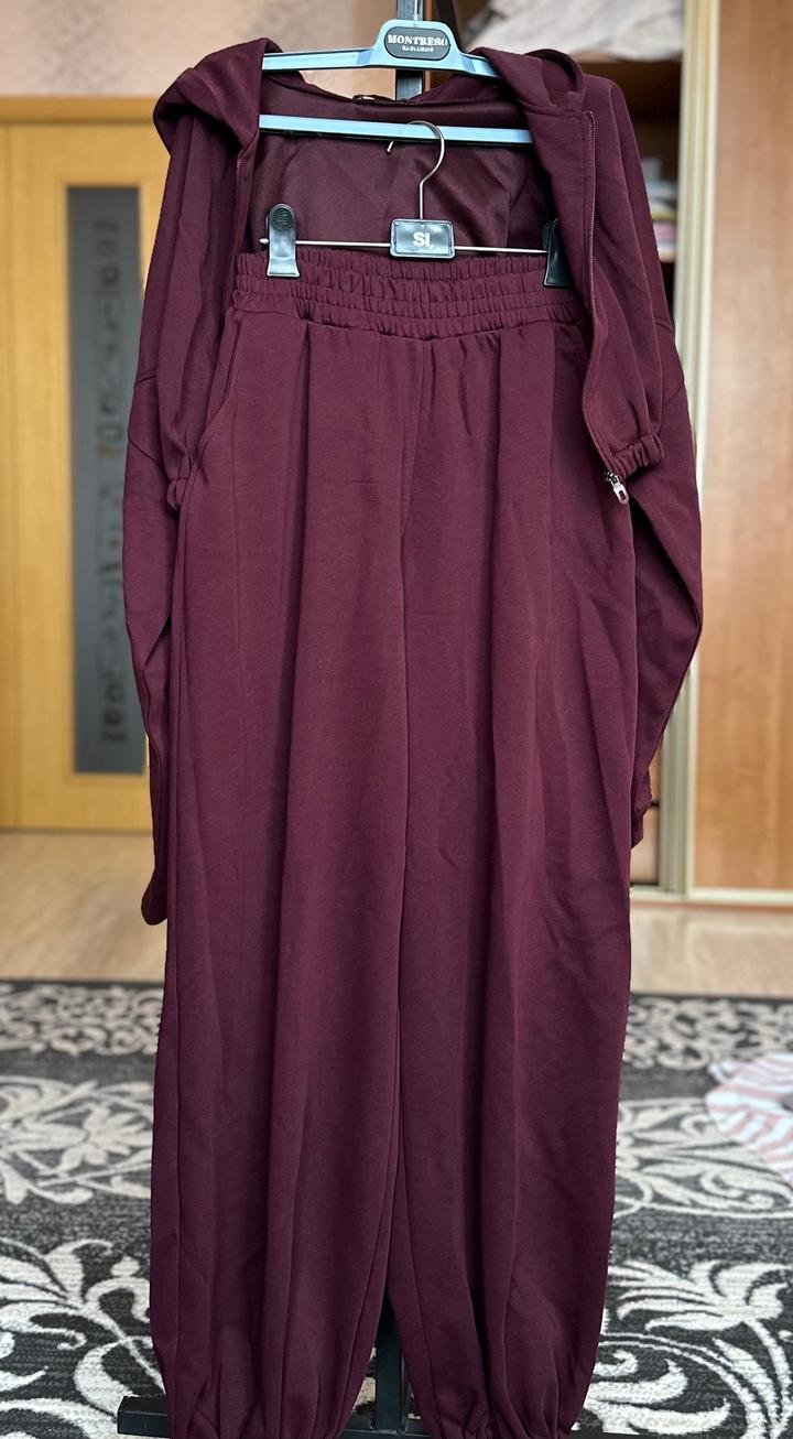 Бордовая тройка новая , размер 44(M) , можно и на S ,состоящая из брюк-алладинок на манжете, регулируемого корсета и укороченной олимпийки . Красиво на каждый день , мнe (мой размер Xs) оказались большими . Артикул: 564060