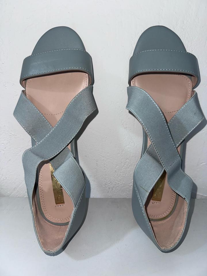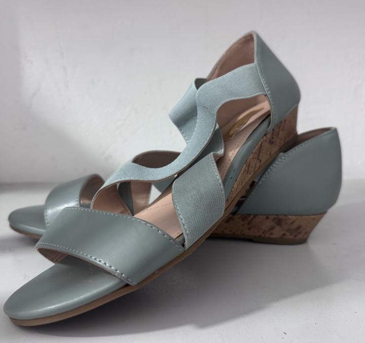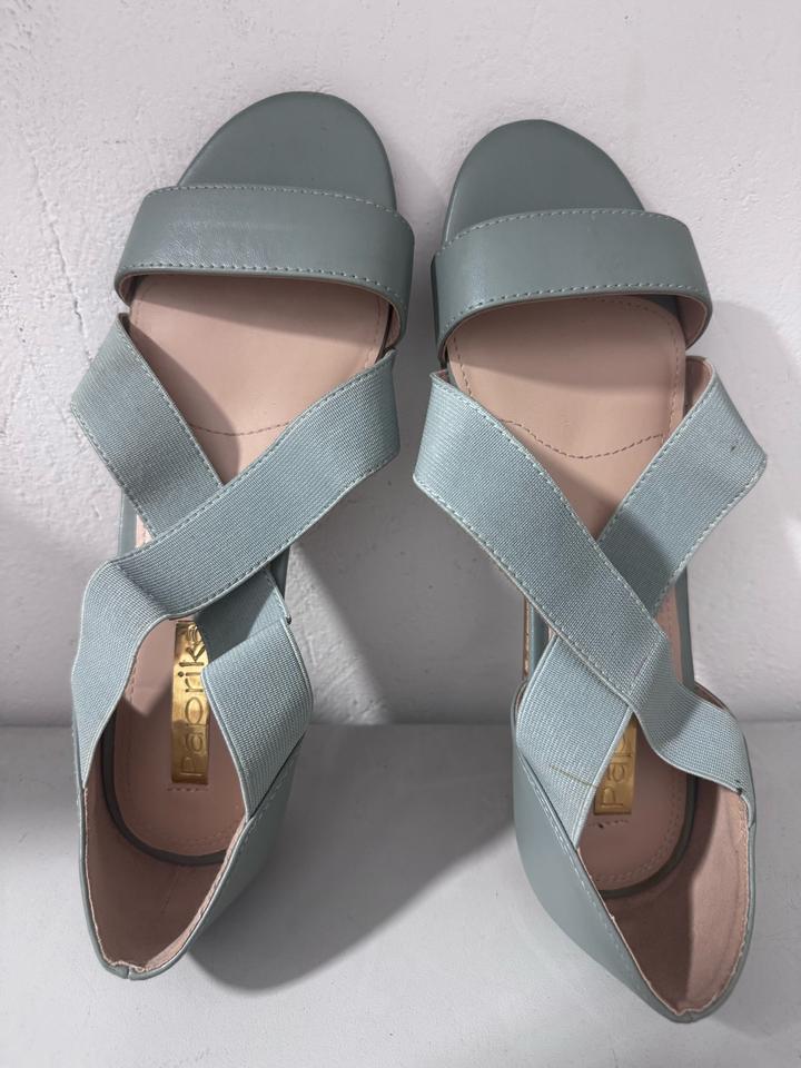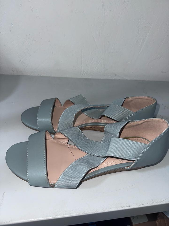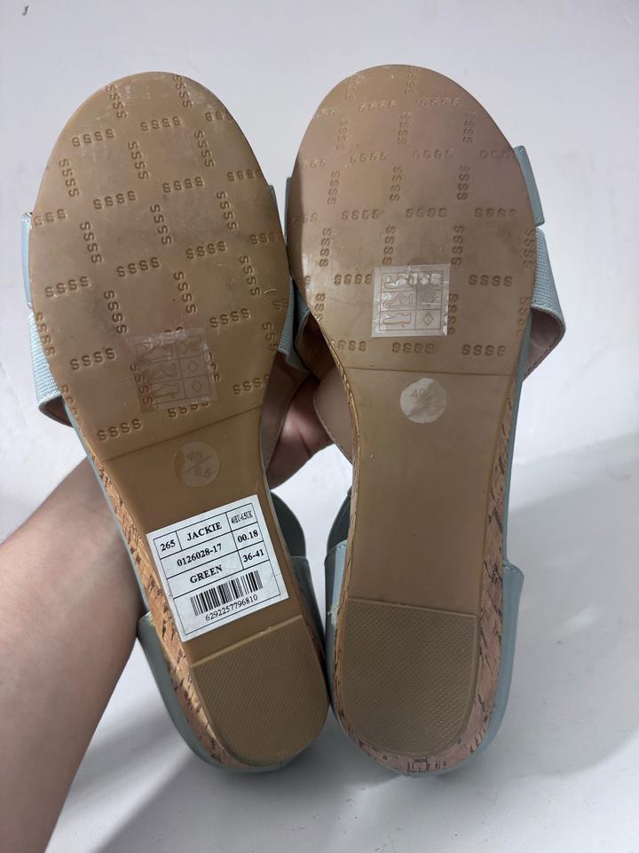 Женские сандалии на резинке. Новые, но лежат давно поэтому есть следы пыли и грязи в некоторых местах. Размер 40. На ноге очень удобные. Цвет светло- зеленый. Артикул: 564156