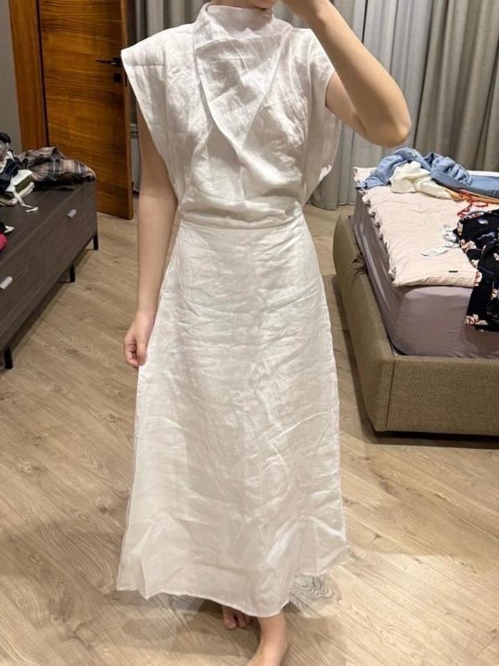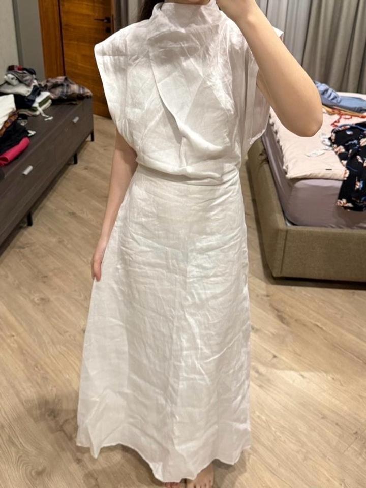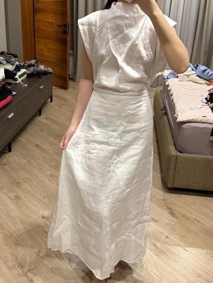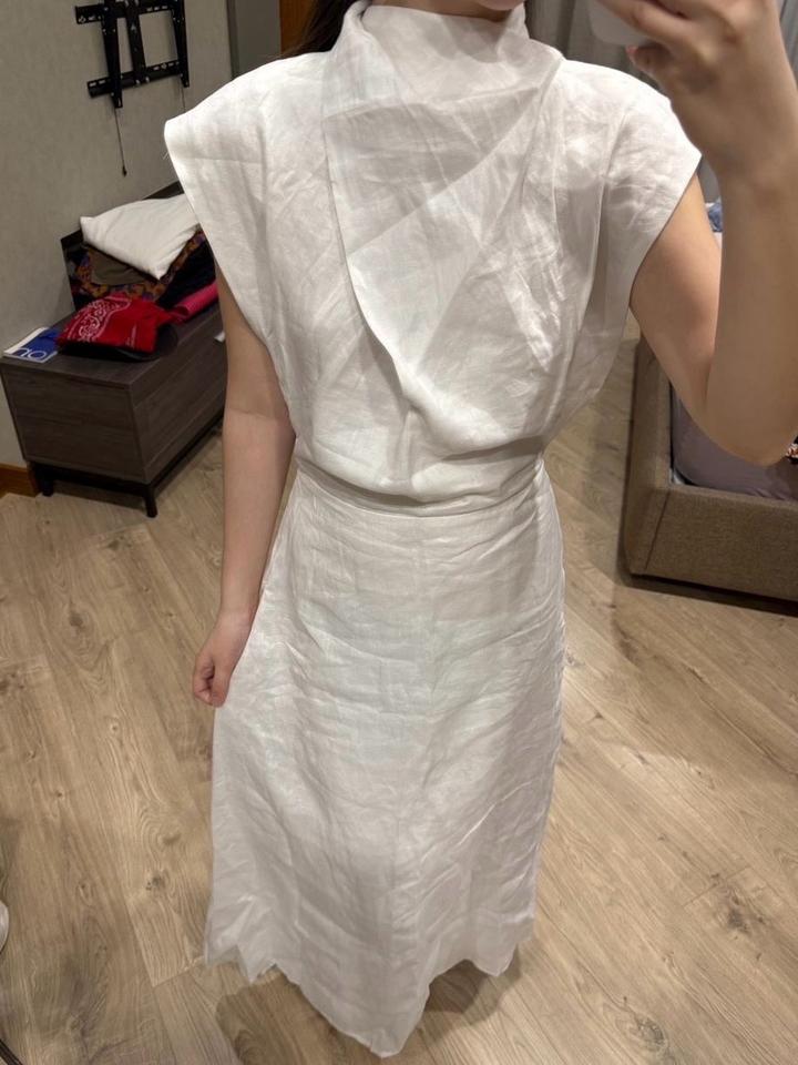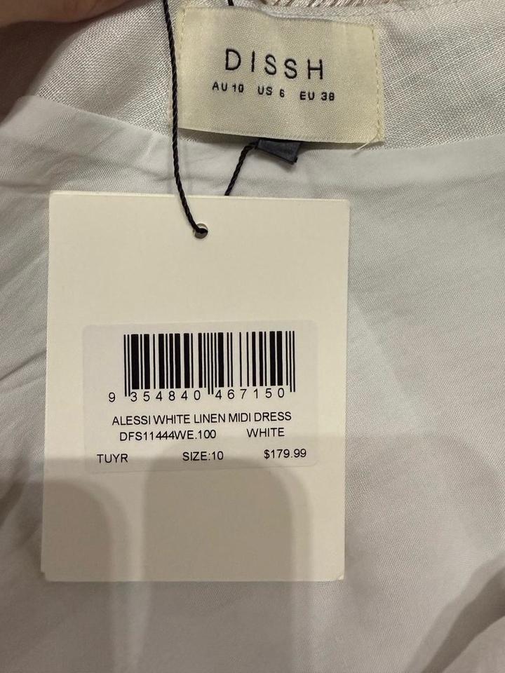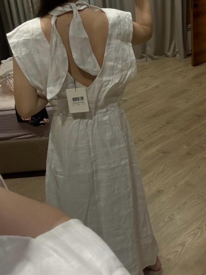 Бело платье из льна, миди длина, размер 38 европейский, оригинал DISSH Артикул: 564208
