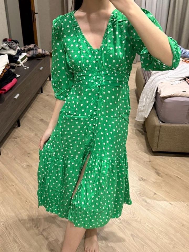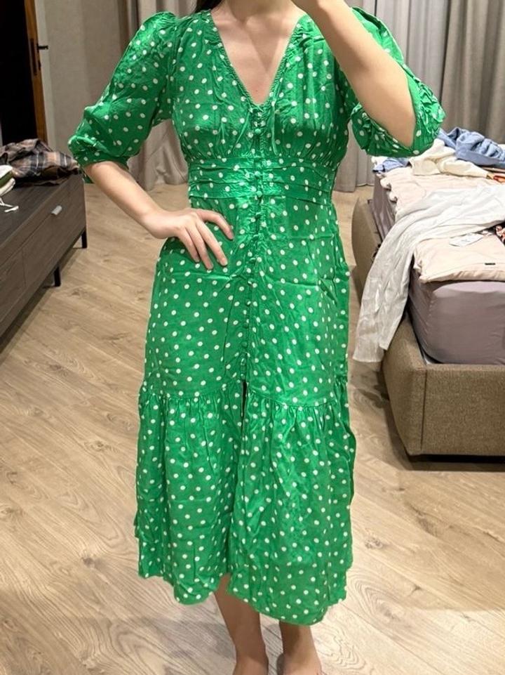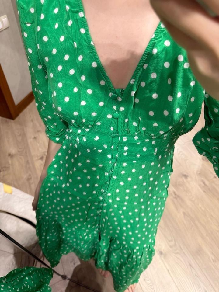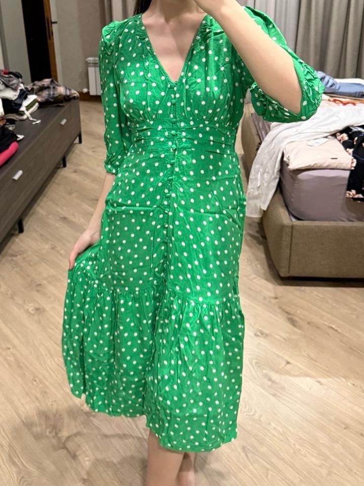 Зеленое платье в горошек Zara, б/у, в отличном состояний Артикул: 564212