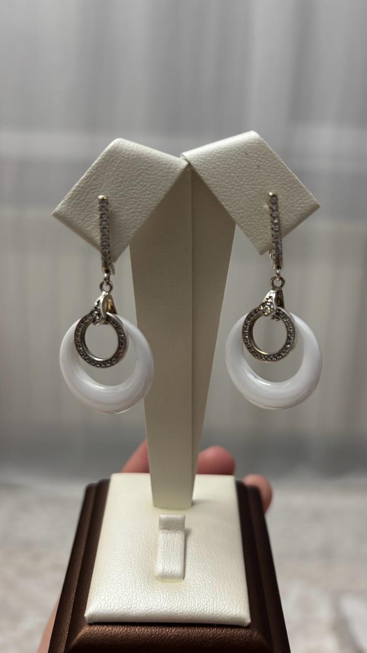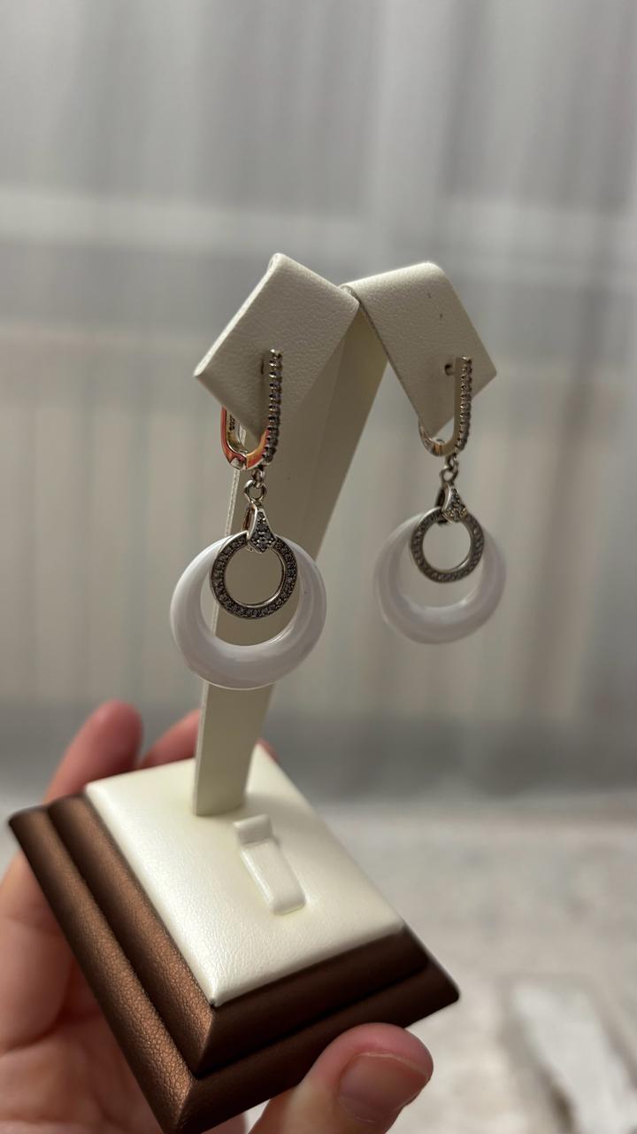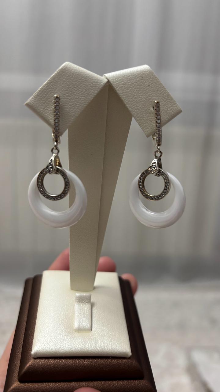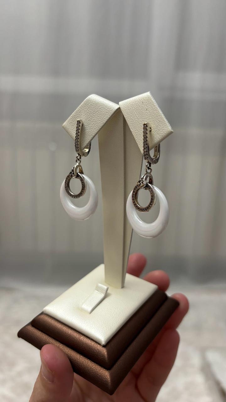 Висячие серьги из серебра с керамическими вставками. 925 проба, 6,79 гр-