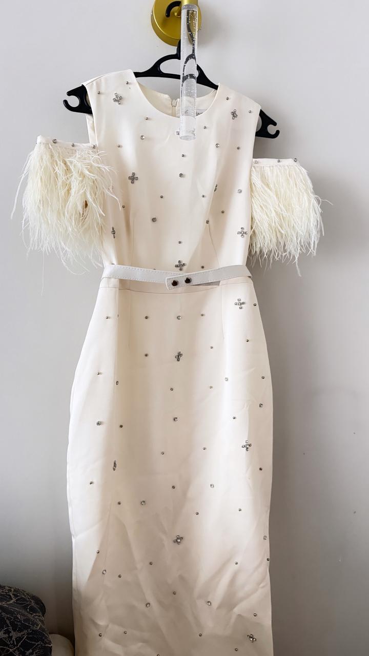 Надевалось единожды.Пышные перья,брала в магазине losk_ink.Качество отличное,не путайте с обычными шоурумами.Приталенное,создает силуэт песочных часов.Размер с,но на худую м тоже хорошо сядет.Цвет айвори. Артикул: 564396