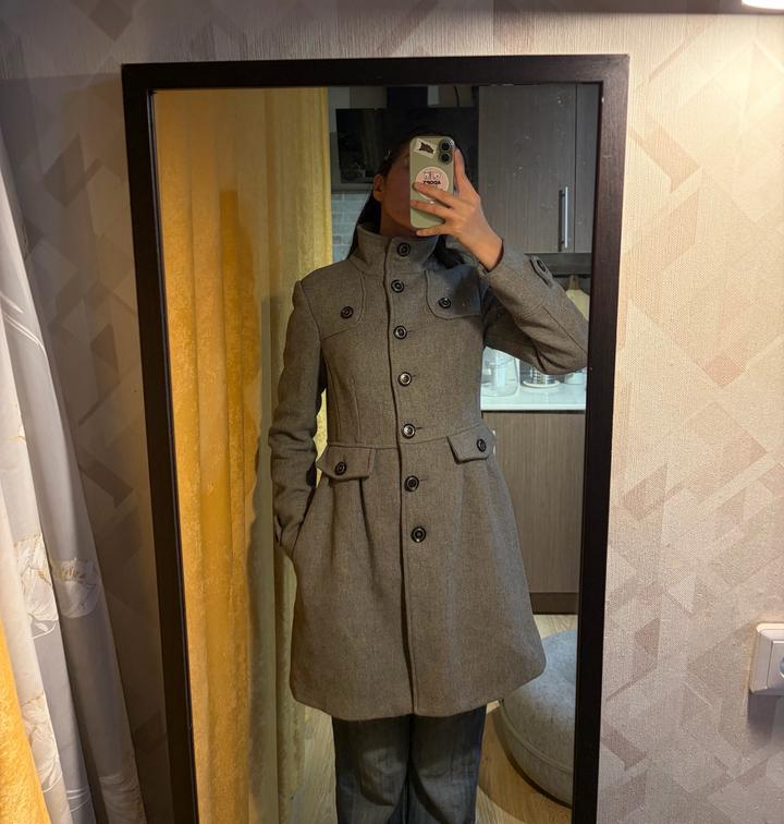 Серое теплое пальто из шерсти. Mango Casual Sportswear. В очень хорошем состоянии. Артикул: 564611
